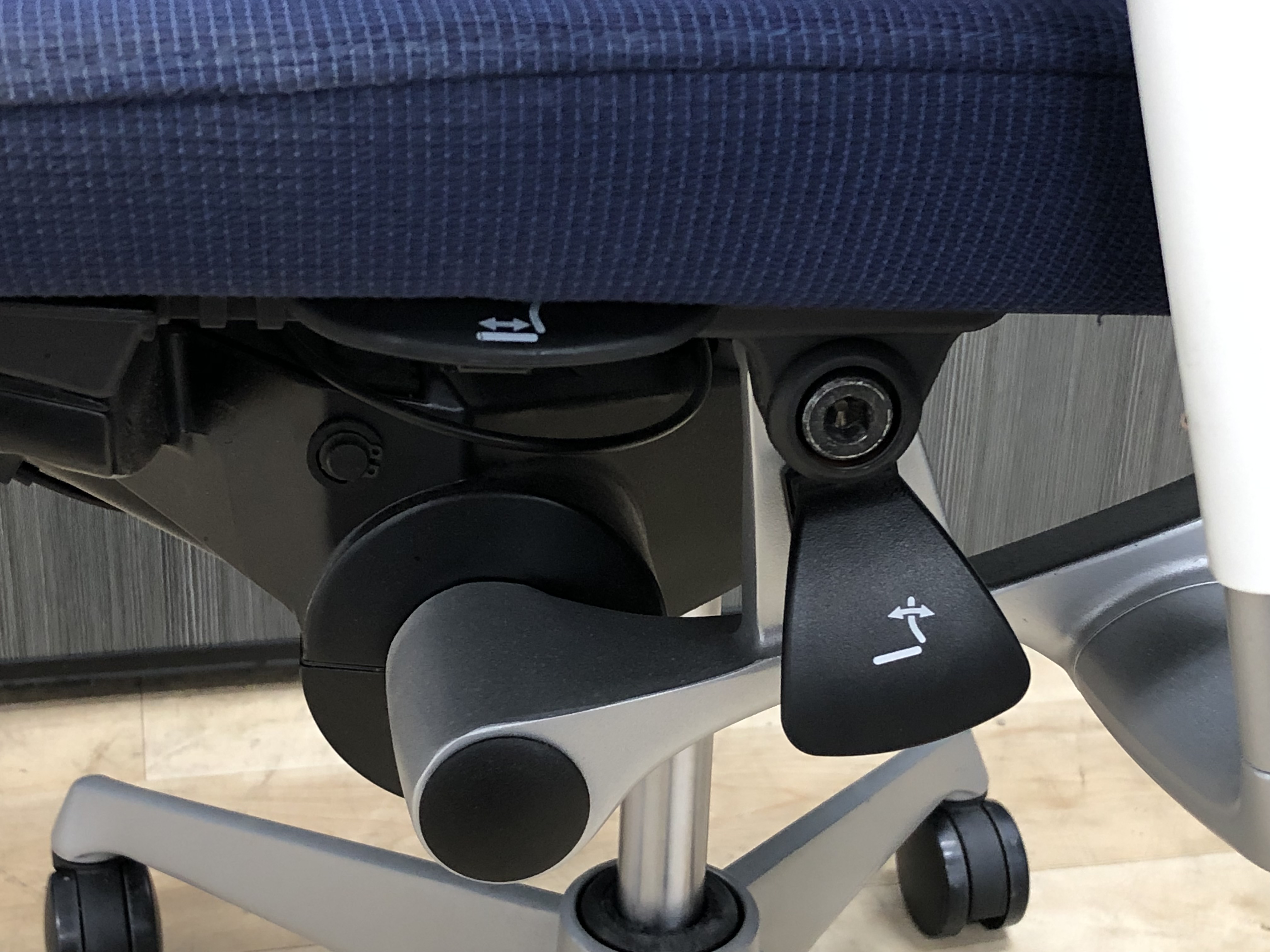 - 座面の右下にあるレバーの操作により座面位置を上下に100mm分調整することが可能です。