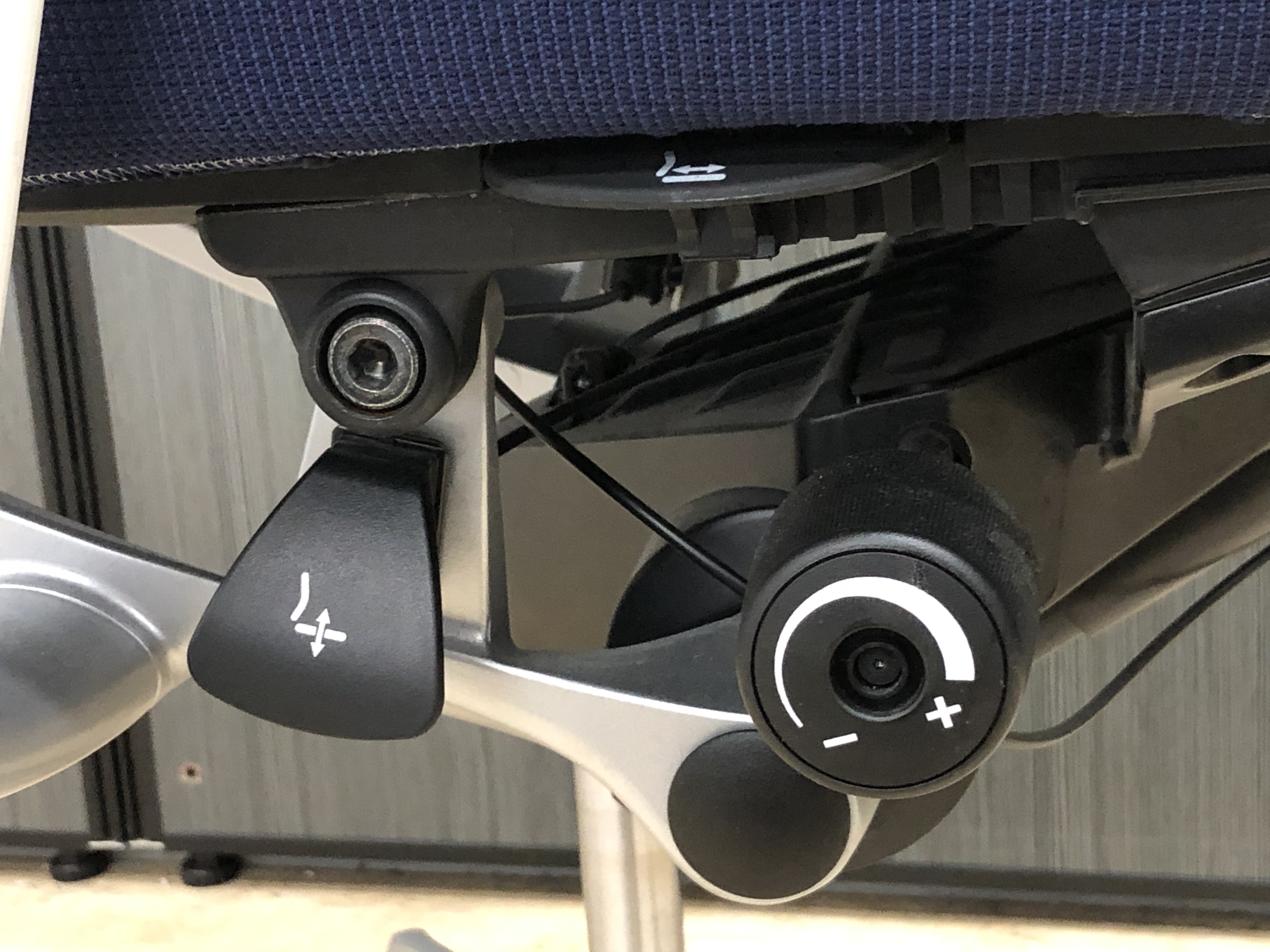 気に入っているのはリクライニング調整の自由さです。同じオカムラ社製の上位モデルや下位モデルも、角度が5段階程度の固定位置だったり、リクライニング強度も4段階だったりしますが、バロンチェアはどちらも無段階。つまり完全に好きな位置、好きな強度に調整することができます。