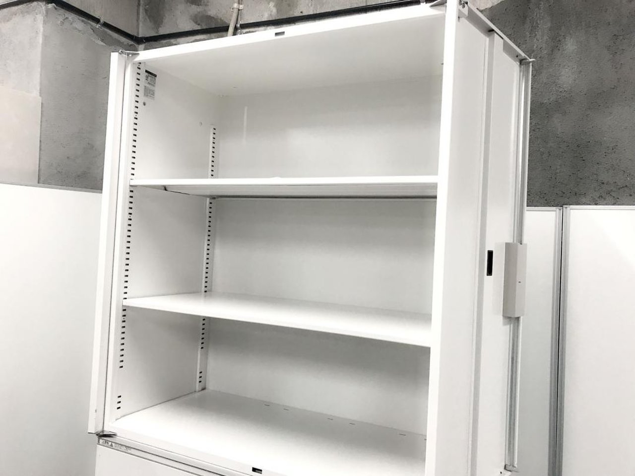 【A4ファイルも沢山収納可能!ホワイトカラーの人気シリーズオープン書庫!】■イトーキ(ITOKI)製 シンライン(THIN LINE) オープン書庫 ハイキャビネット ■ホワイト ■シリンダー錠 ※扉外し商品のため外し跡がございます。【入替セールにつき20%OFF!】