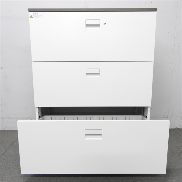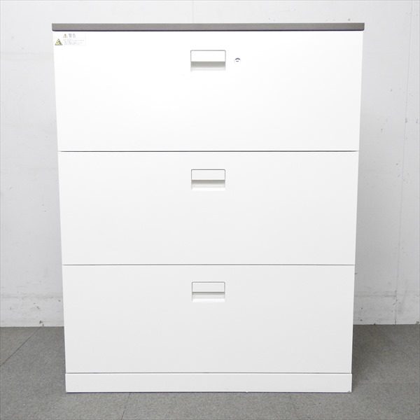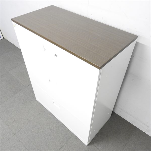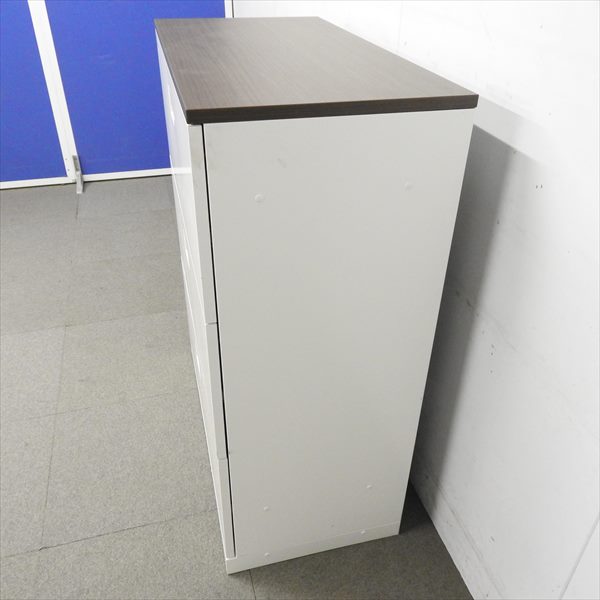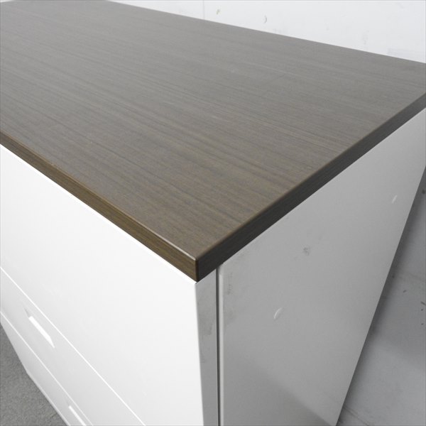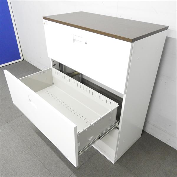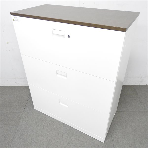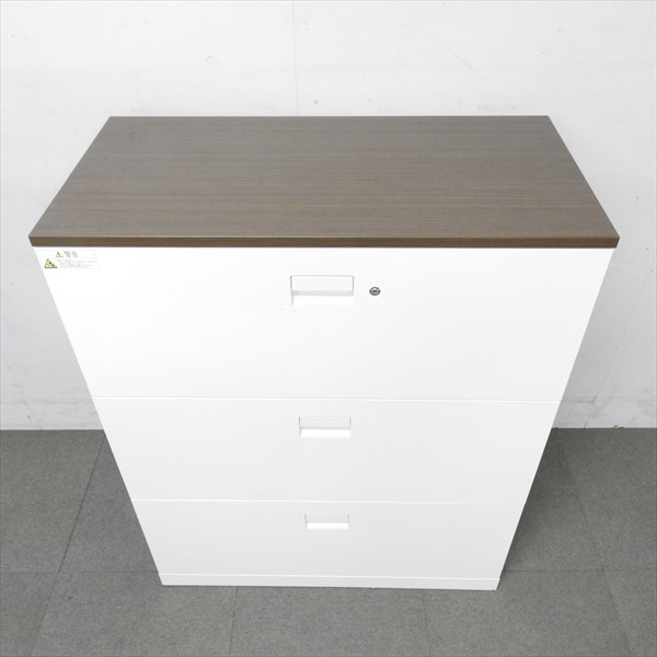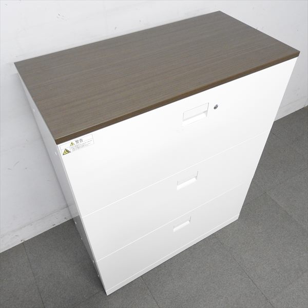 【スタイリッシュデザイン!】■イトーキ製 3段ラテラル書庫 ホワイト シックなイメージのブラウン天板付! ■ファイル収納がラクラク!引出し型キャビネット【倉庫在庫】【RP】- 品川・三田店