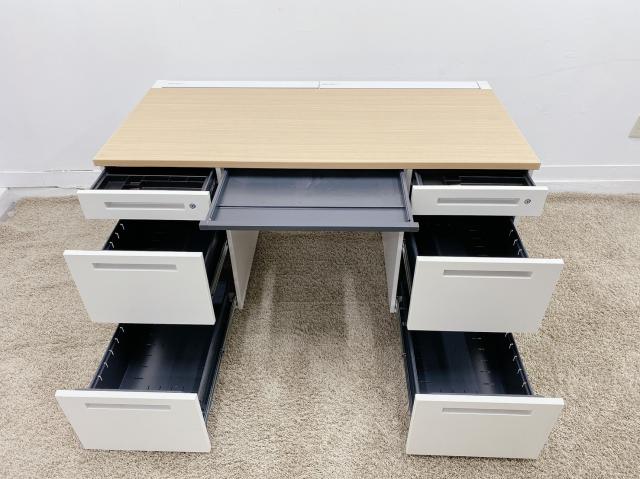 【トレンドの木目デザイン!】■イトーキ製 両袖デスク W1400mm ナチュラル【倉庫在庫】【RP】サーキュラーバリューCO2削減量の算出について