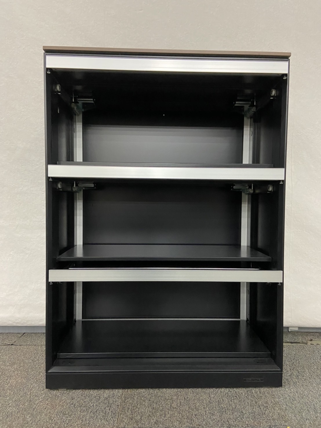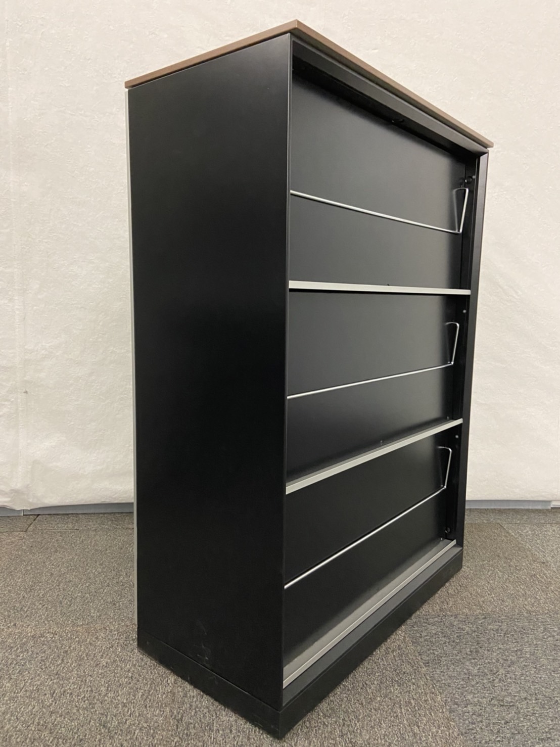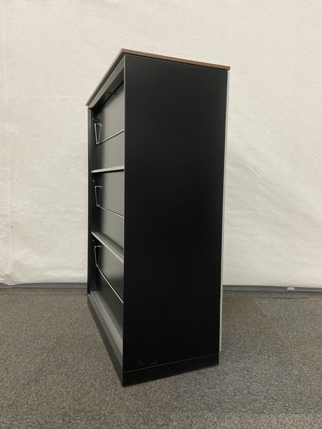 【関東倉庫在庫品】中古品では珍しい!オカムラ製・3段雑誌架タイプ!ブラックカラーで高級感あるデザインです!雑誌・パンフレッド等々、扉を開けると収納でき、オフィスの雰囲気を変えたい方におすすめとなっております!! 弊社使用欄【A00819562】- 全店共通商品