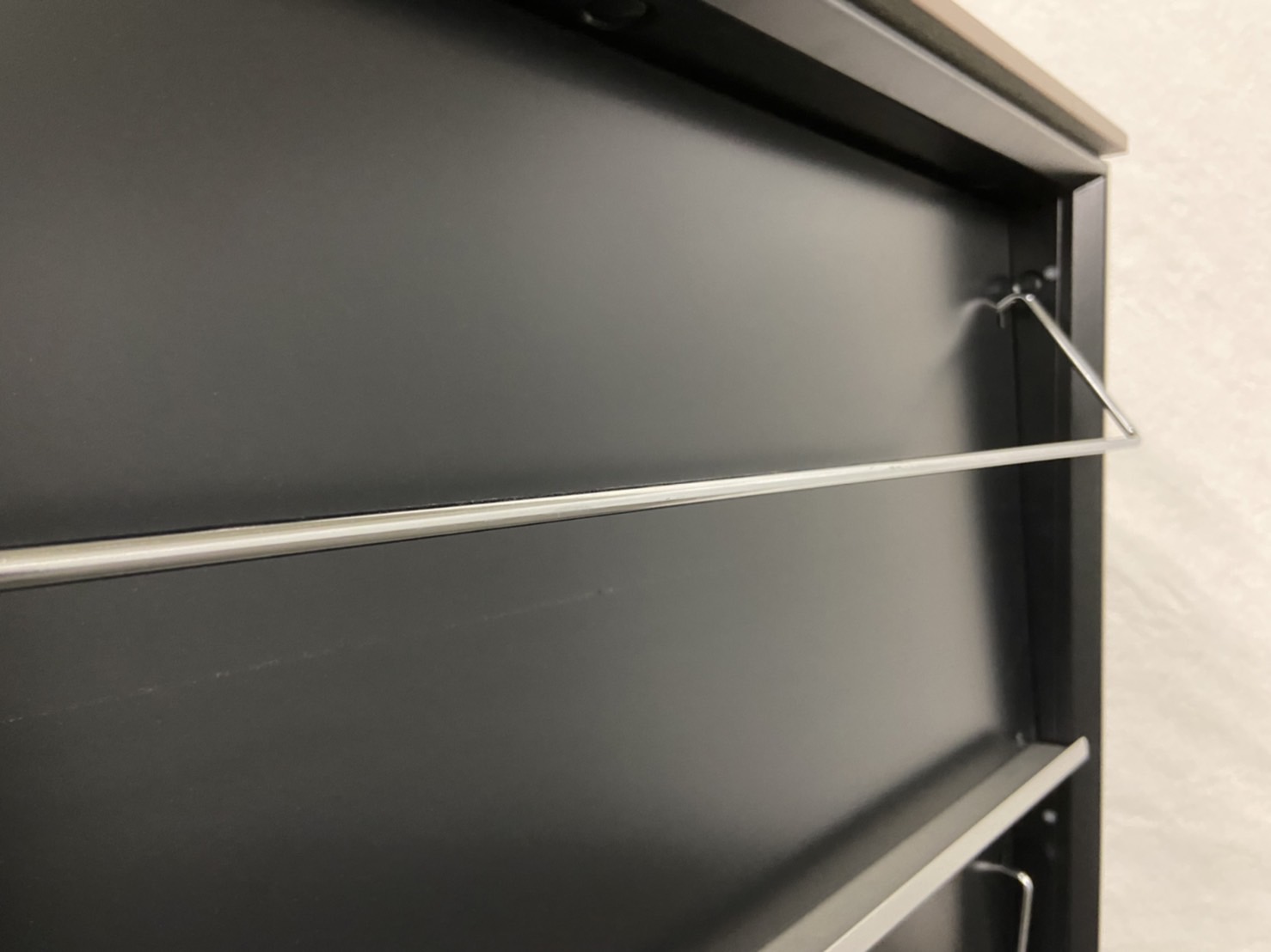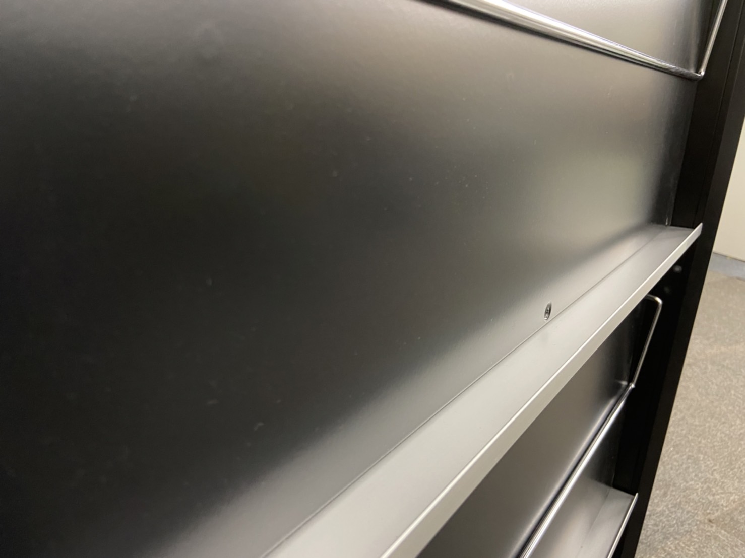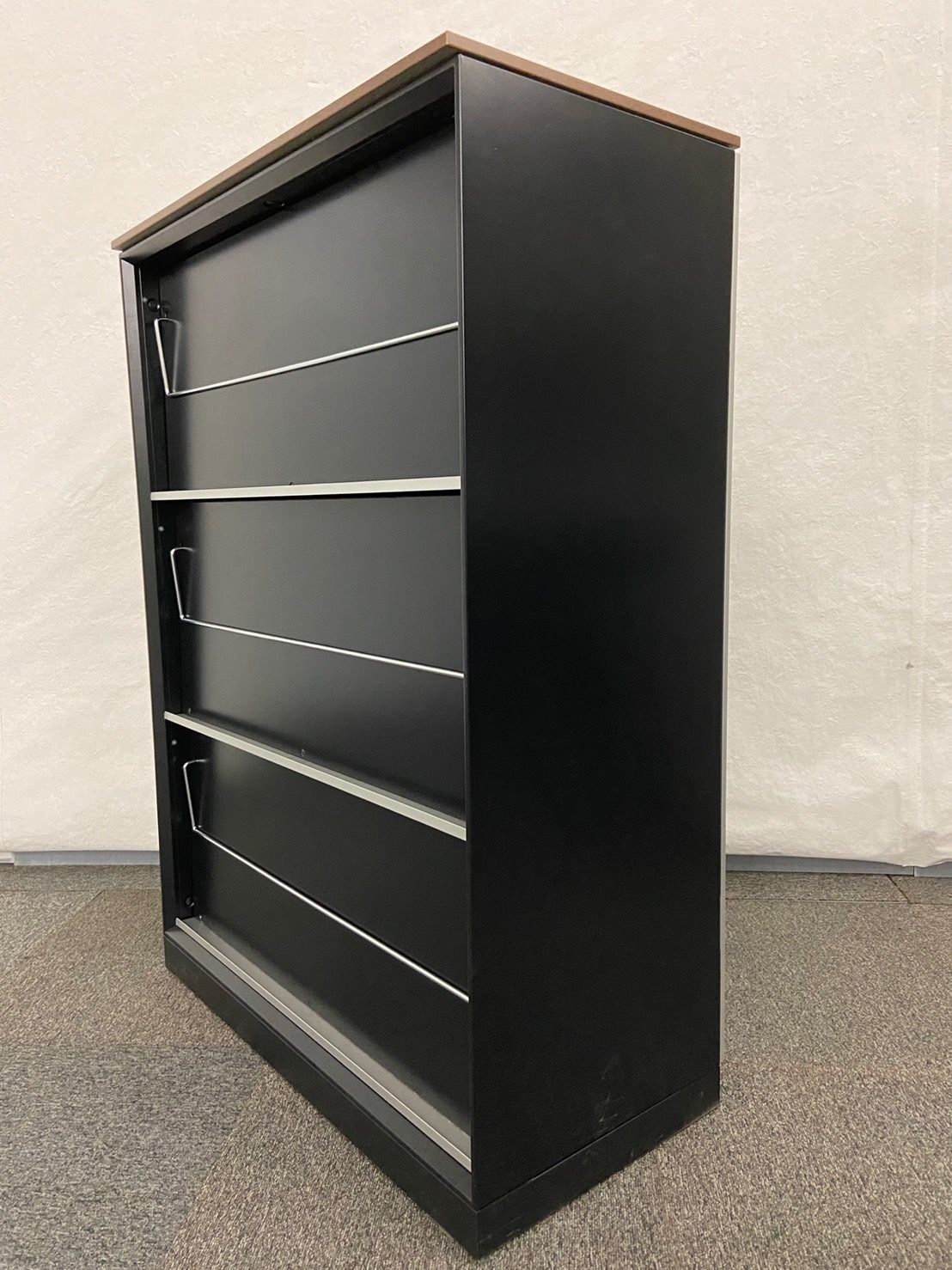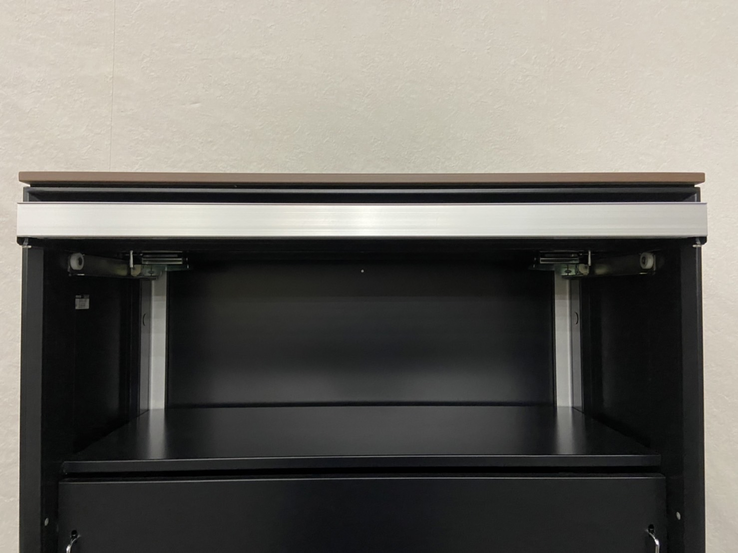 【関東倉庫在庫品】中古品では珍しい!オカムラ製・3段雑誌架タイプ!ブラックカラーで高級感あるデザインです!雑誌・パンフレッド等々、扉を開けると収納でき、オフィスの雰囲気を変えたい方におすすめとなっております!! 弊社使用欄【A00819562】- 全店共通商品
