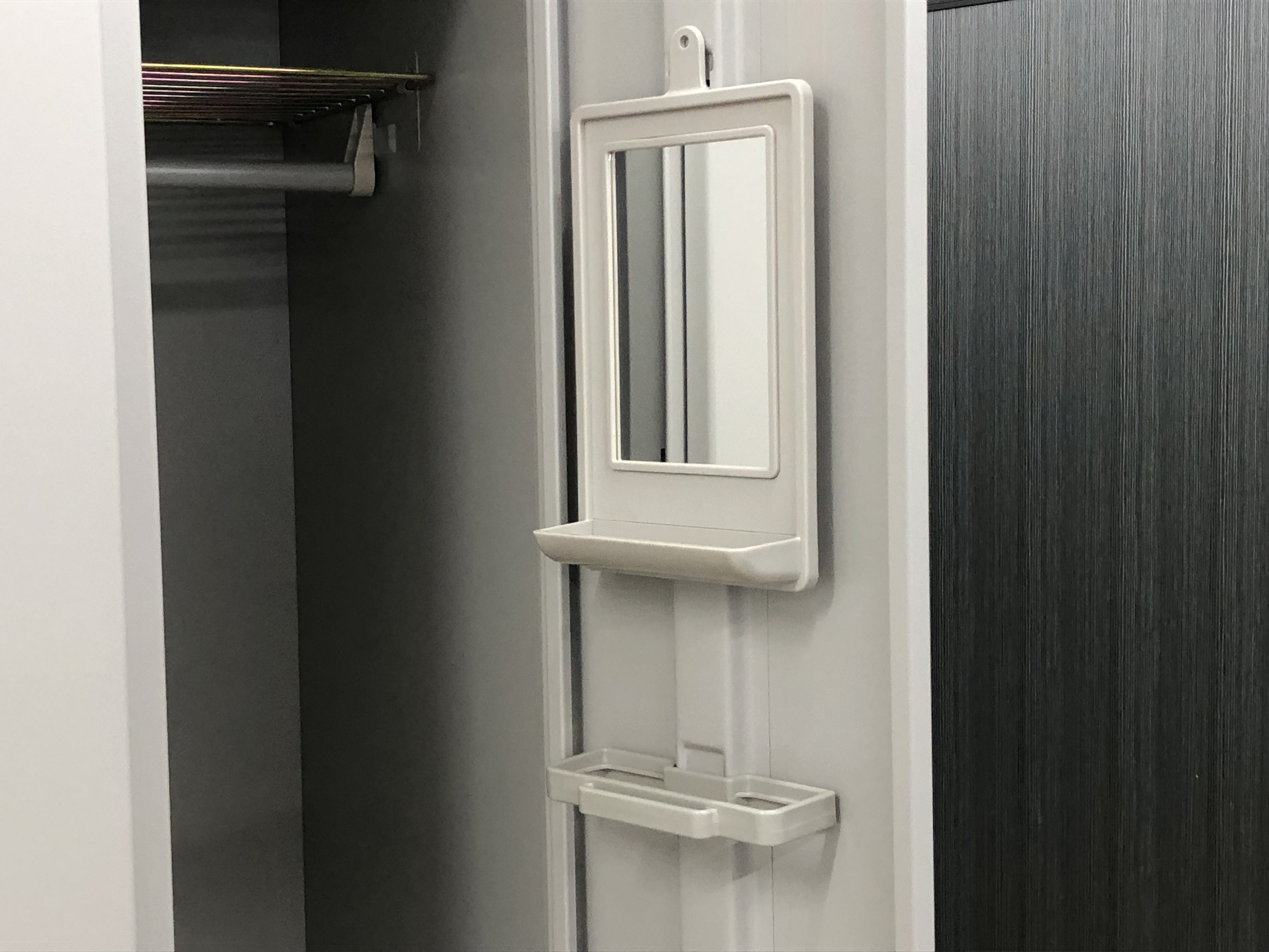 - ほぼ付いてない鏡、ネクタイ掛け、傘立て、網棚、フック等がほぼ付いてない。