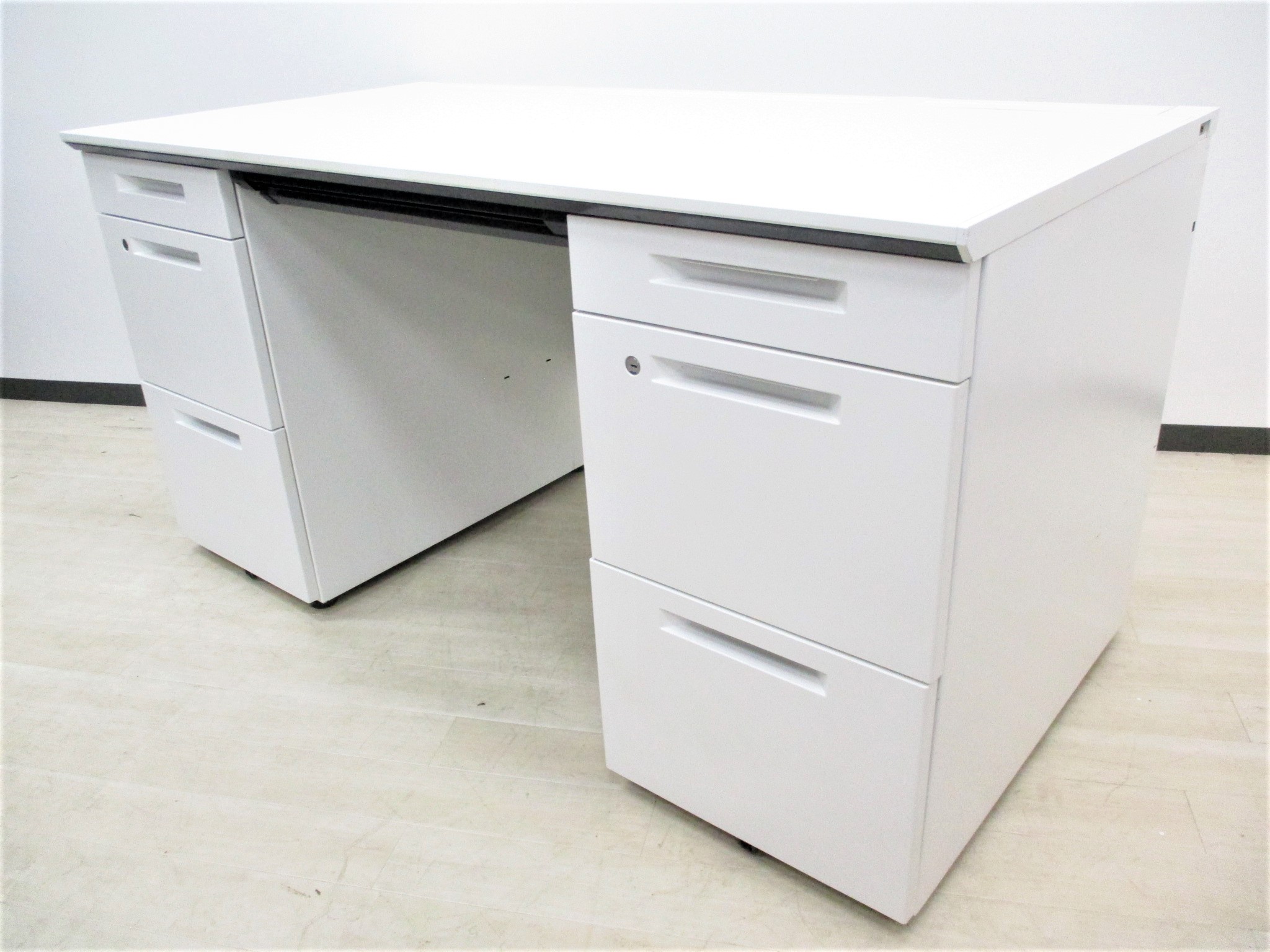 【在庫セール品・1台限定】【T11】■コクヨ(KOKUYO)製 アイエス(iS)シリーズ 両袖デスク W1400mm ■シリンダー錠 ■ホワイト【幅広いワークスペースで上長席にもオススメ! 収納スペース充実! 机上をスッキリ整理!】