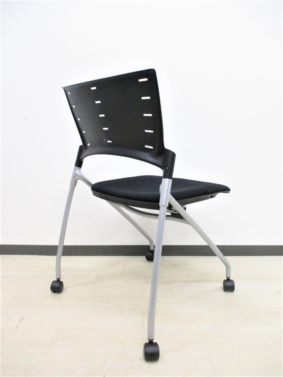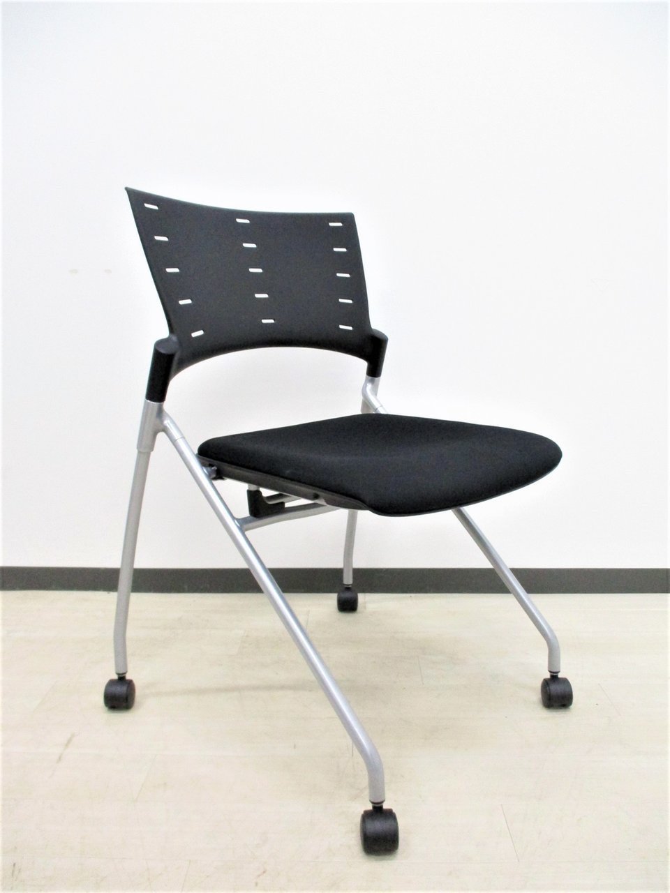 【関西倉庫在庫品】【平行に重ねて省スペース!使い勝手抜群のミーティングチェア!】■イトーキ マノスシリーズ ネスティングチェア 座ブラック 背ホワイト キャスター付【ITOKI Manos】【W】