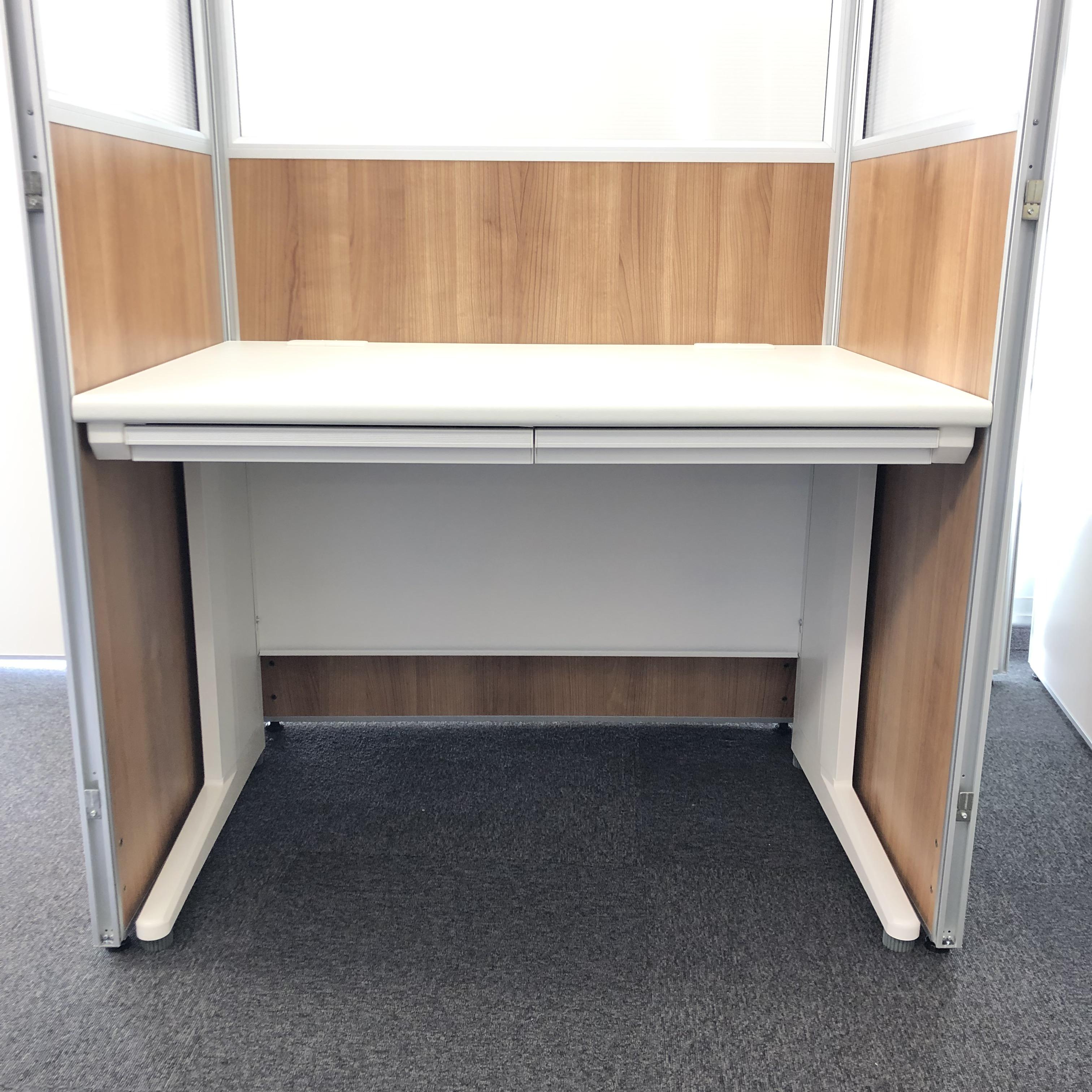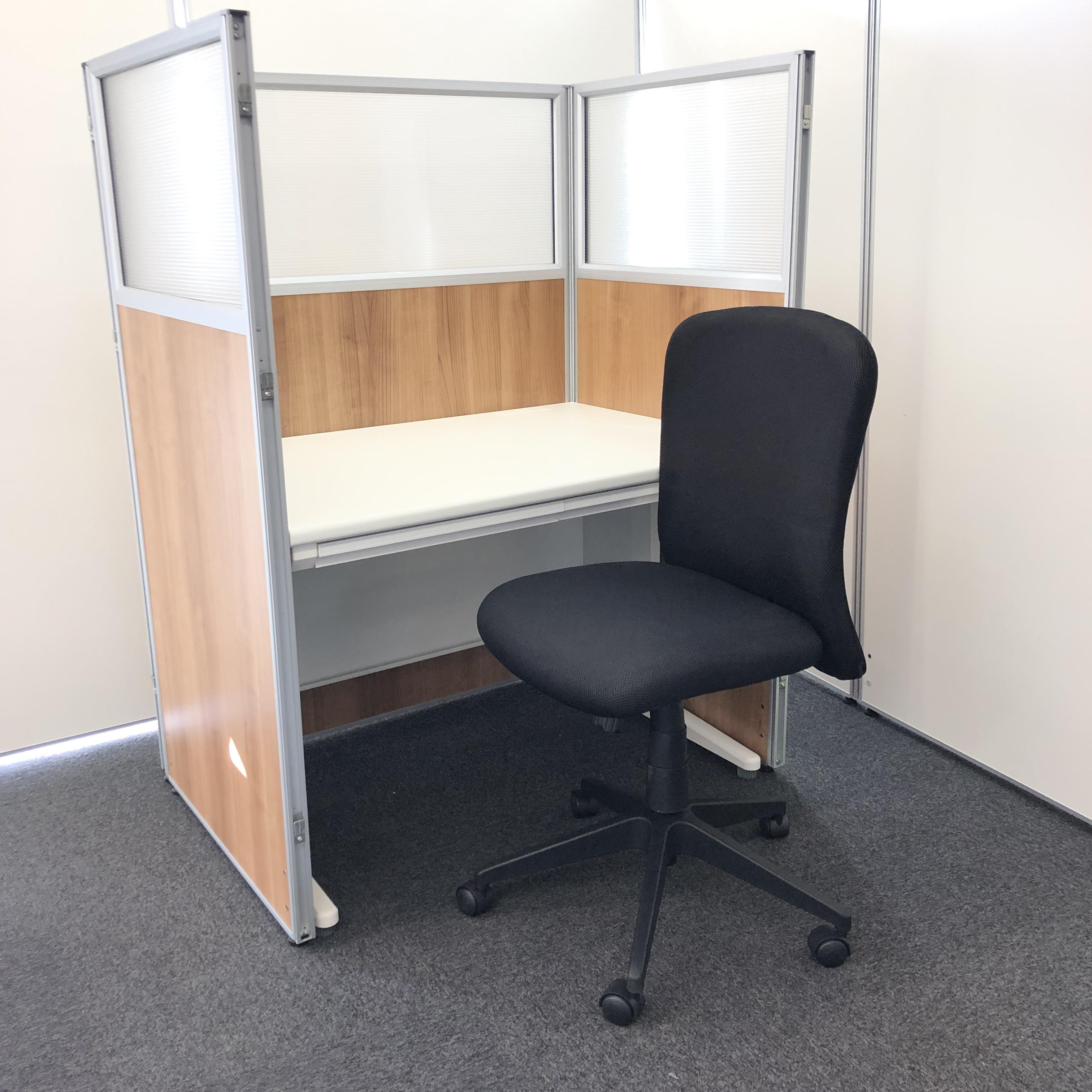 【流行りのブースセット】木目が落ち着いた印象的!集中ブースとして、WEB会議などにご使用下さい!(デスク&パーテーション&チェアセット)- 豊中・尼崎店