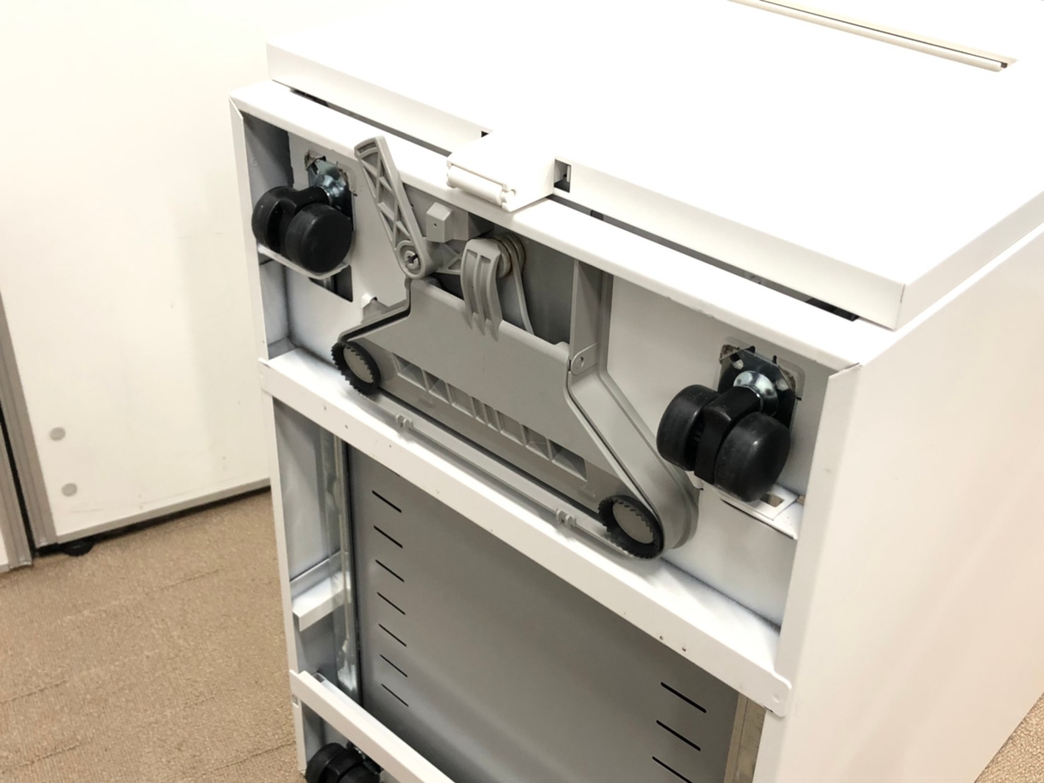 - 多数不具合ありその脇机・ワゴンの本来の効用を果たすための機能以外の多数が使用不可な状態。(例、引出が開閉しづらい、 キャスターロック機能使用不可、ラッチ不良 等がある。)