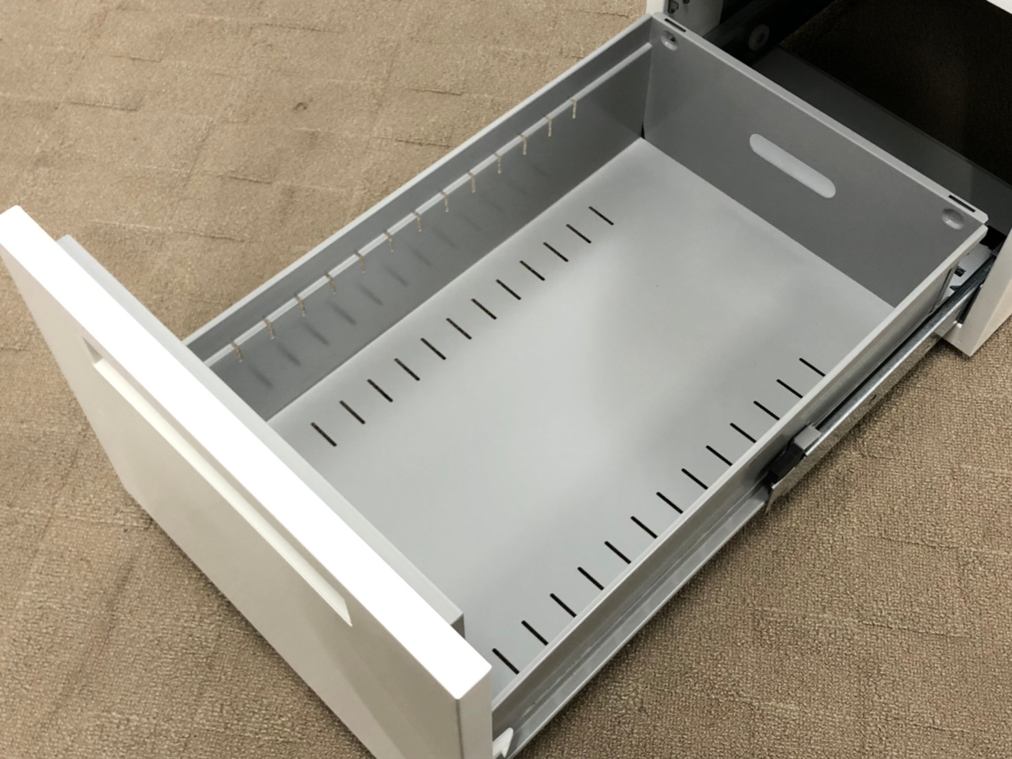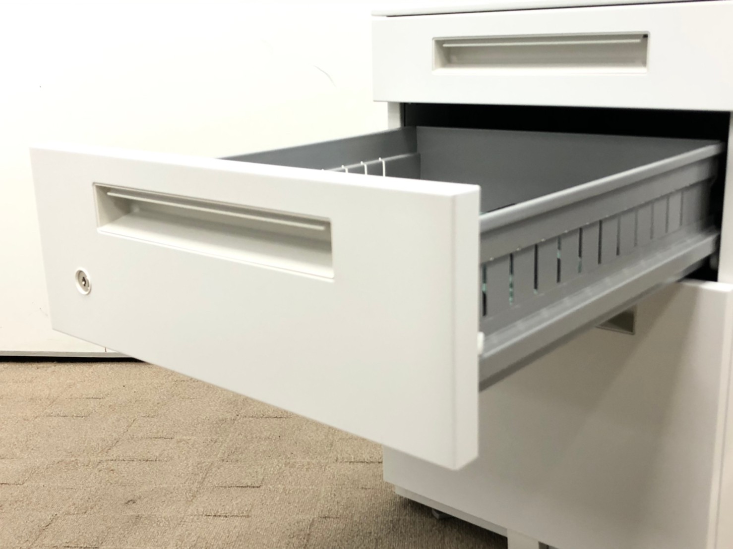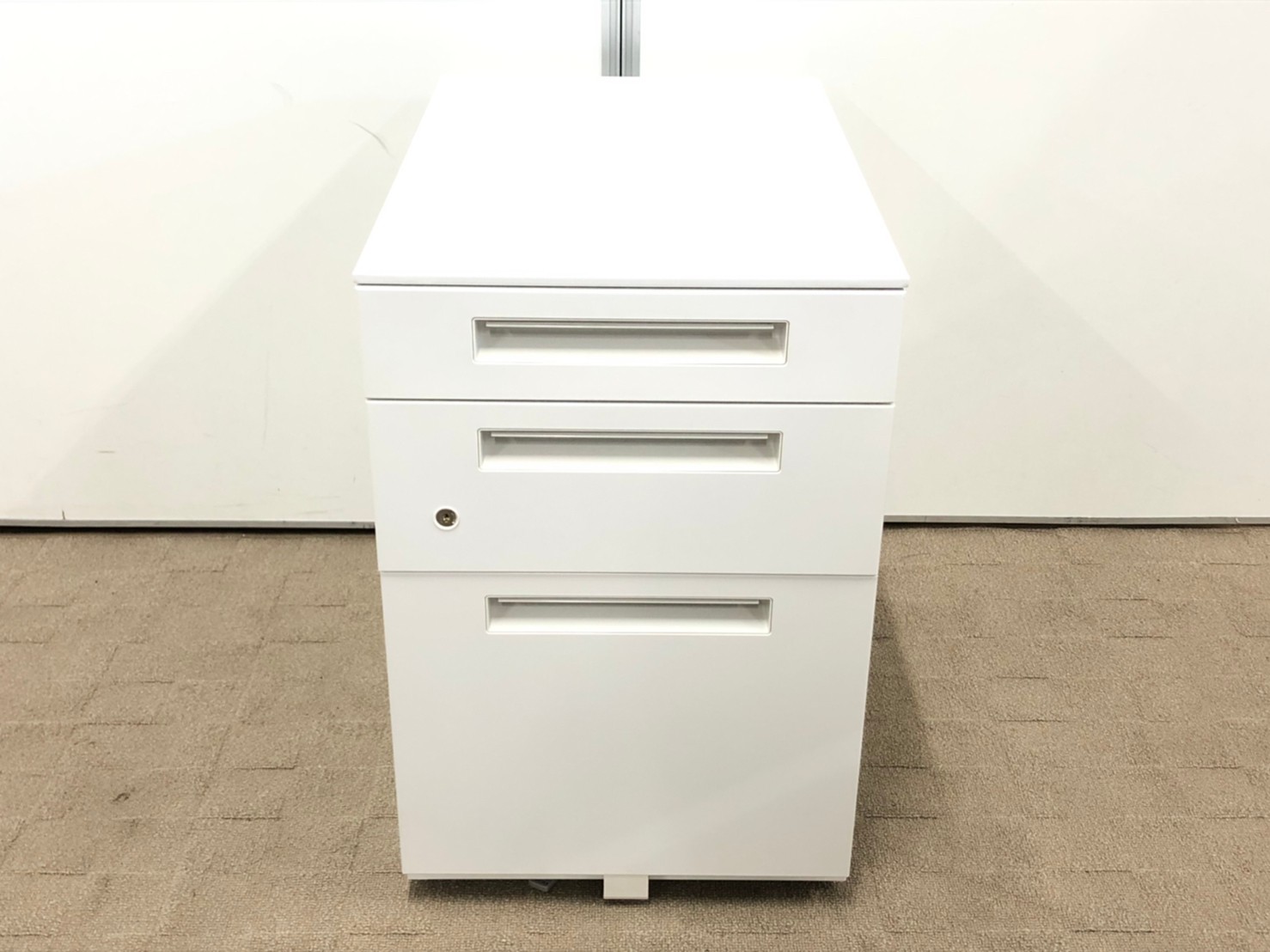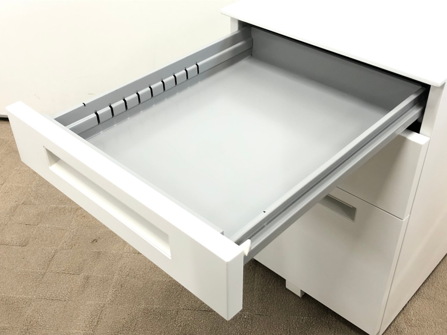 - 一部不具合ありその脇机・ワゴンの本来の効用を果たすための機能以外の一部が使用不可な状態。(例、引出が開閉しづらい、 キャスターロック機能使用不可、ラッチ不良 等がある。)