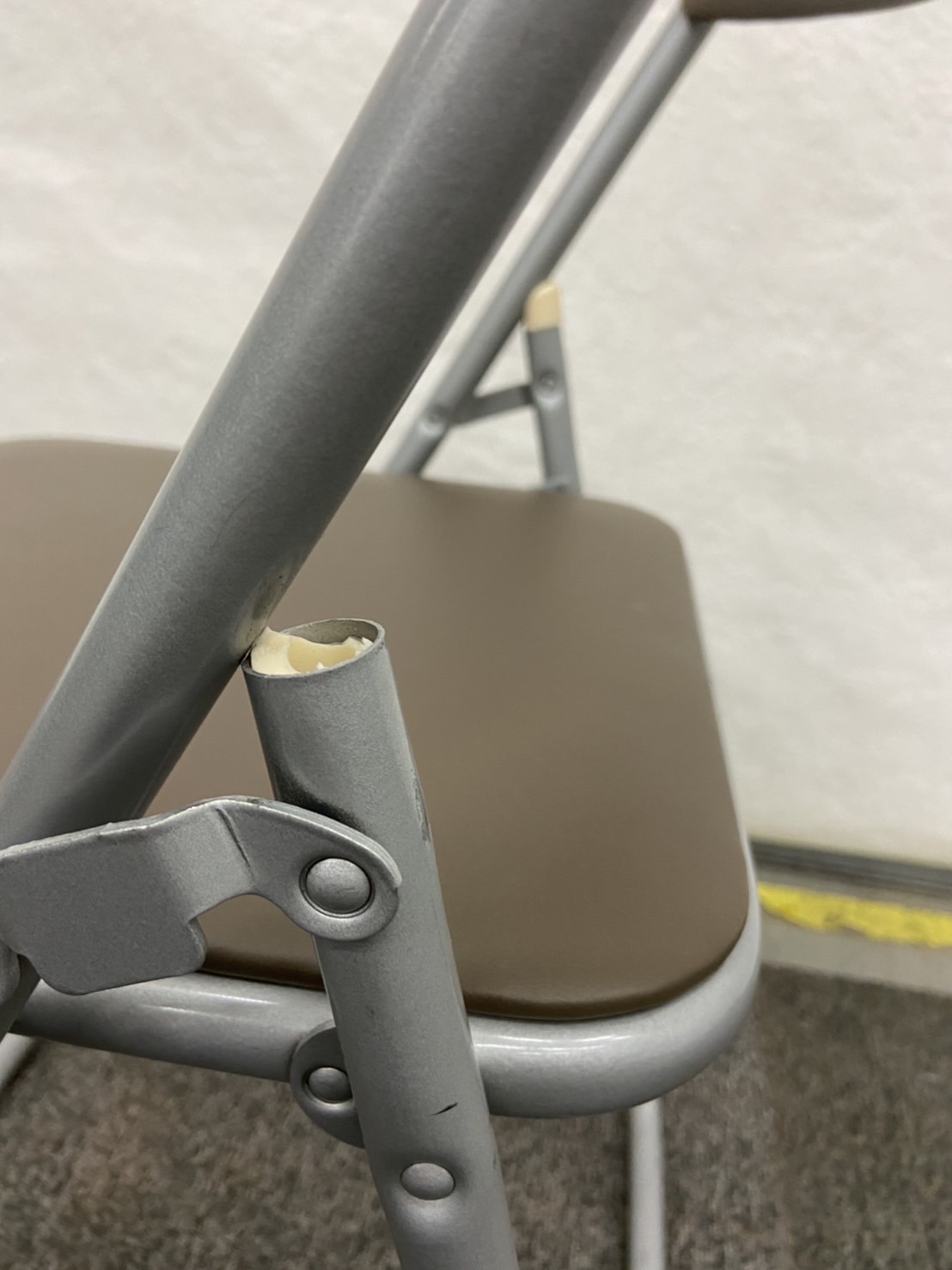- かなり強い濃い黄ばみ・変色が商品全体にある。(例、座面・背もたれ、脚部等にある。)