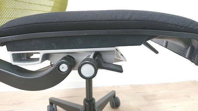 快適な座り心地に不可欠な調節機能である、上下昇降、座面の奥行き調整、リクライニングなどを備えており、操作もわかりやすく好評です。 特に、座面の奥行きは、座面下の左右に通った細いバーで調整でき、座ったままで軽やかに滑るように調整が可能です。 価格面では、新品では高めですが、中古は流通も多く、定価の3割前後の価格で高級チェアの座り心地を手に入れることができます!