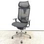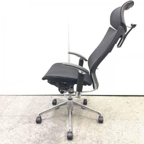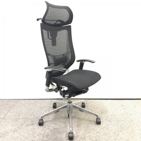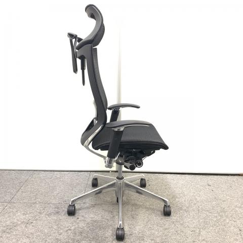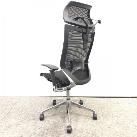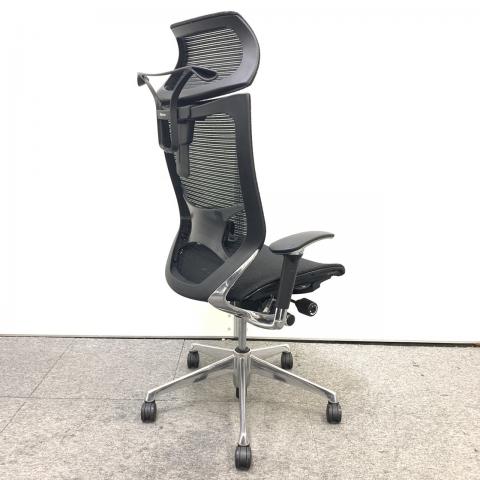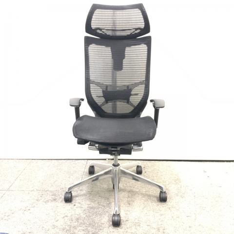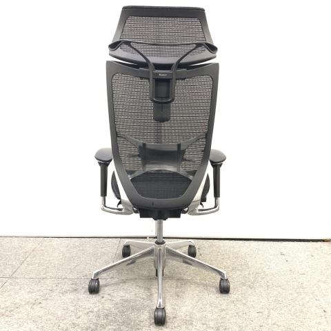 【2018年製】オカムラ バロンチェア エクストラハイバックモデル 座:メッシュ 背:メッシュ シルバーフレーム アジャストアーム 可動ヘッドレスト搭載 ※座面ヨレあり