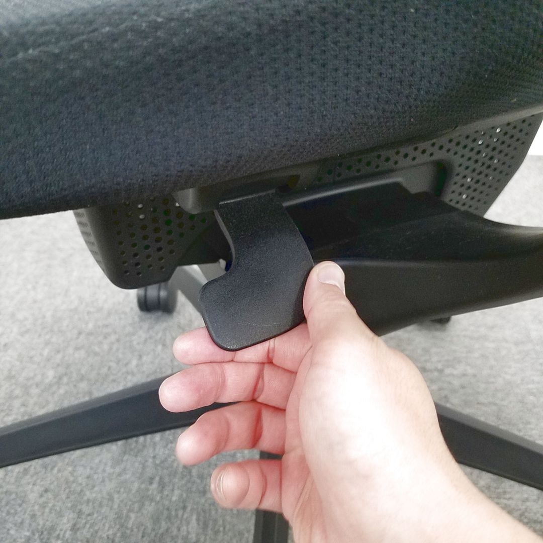 後傾時に太腿の裏側を圧迫しないよう、座面前部が折れ曲がります。