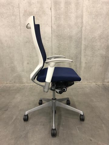 【新品ヘッドレスト付き】オカムラ/バロン/ブルー×ホワイト/可動肘/座面クッション【AD】