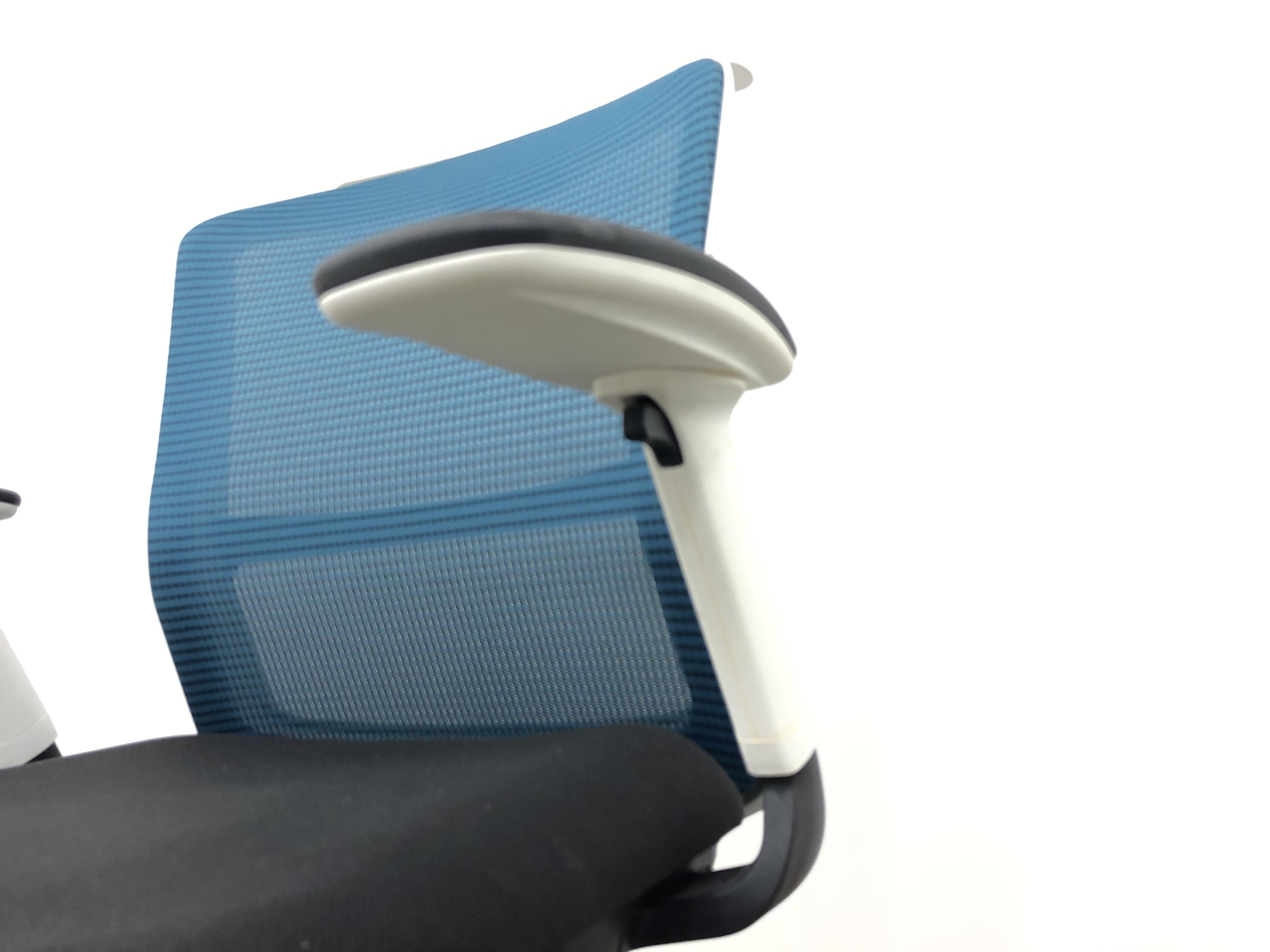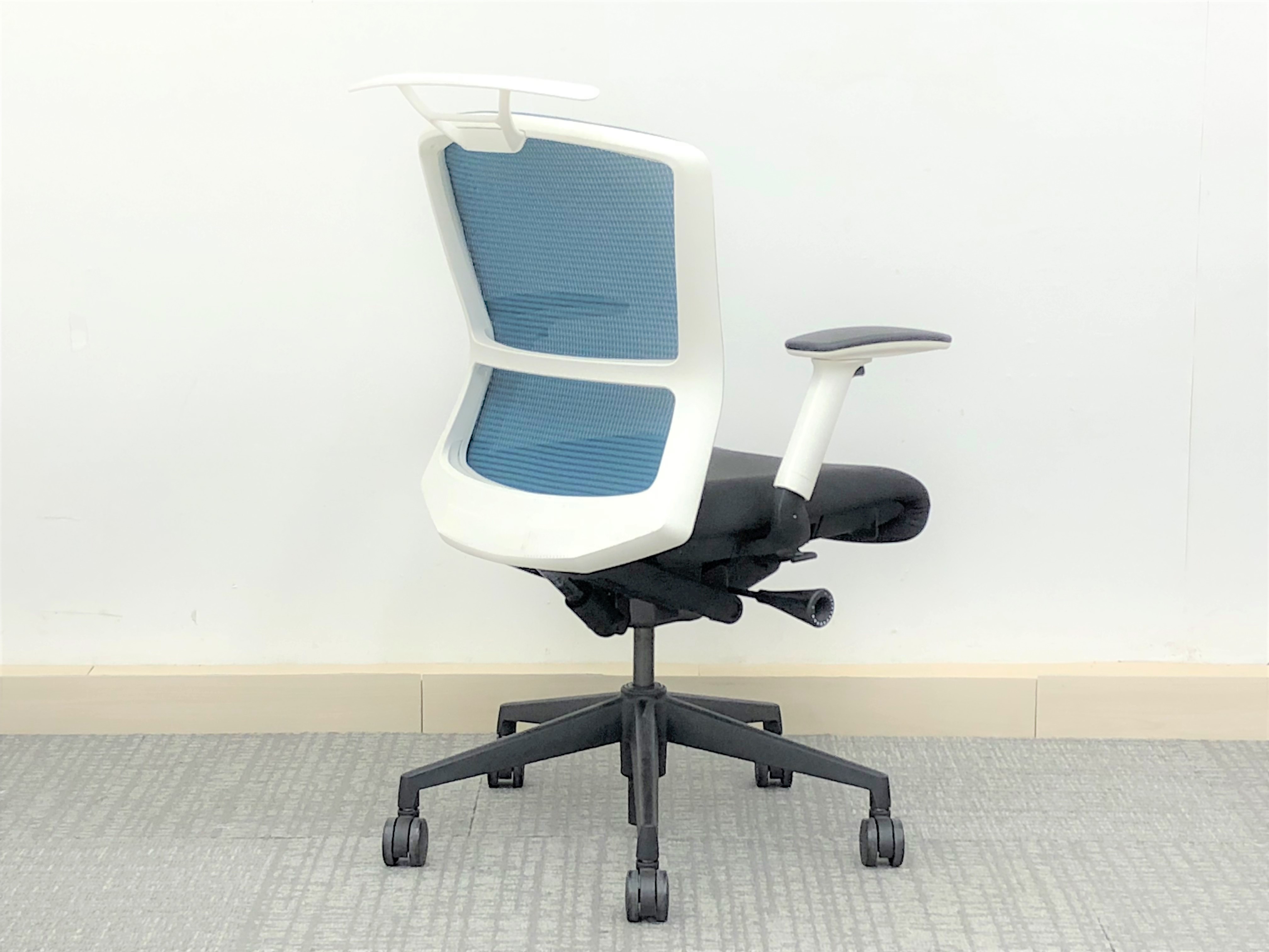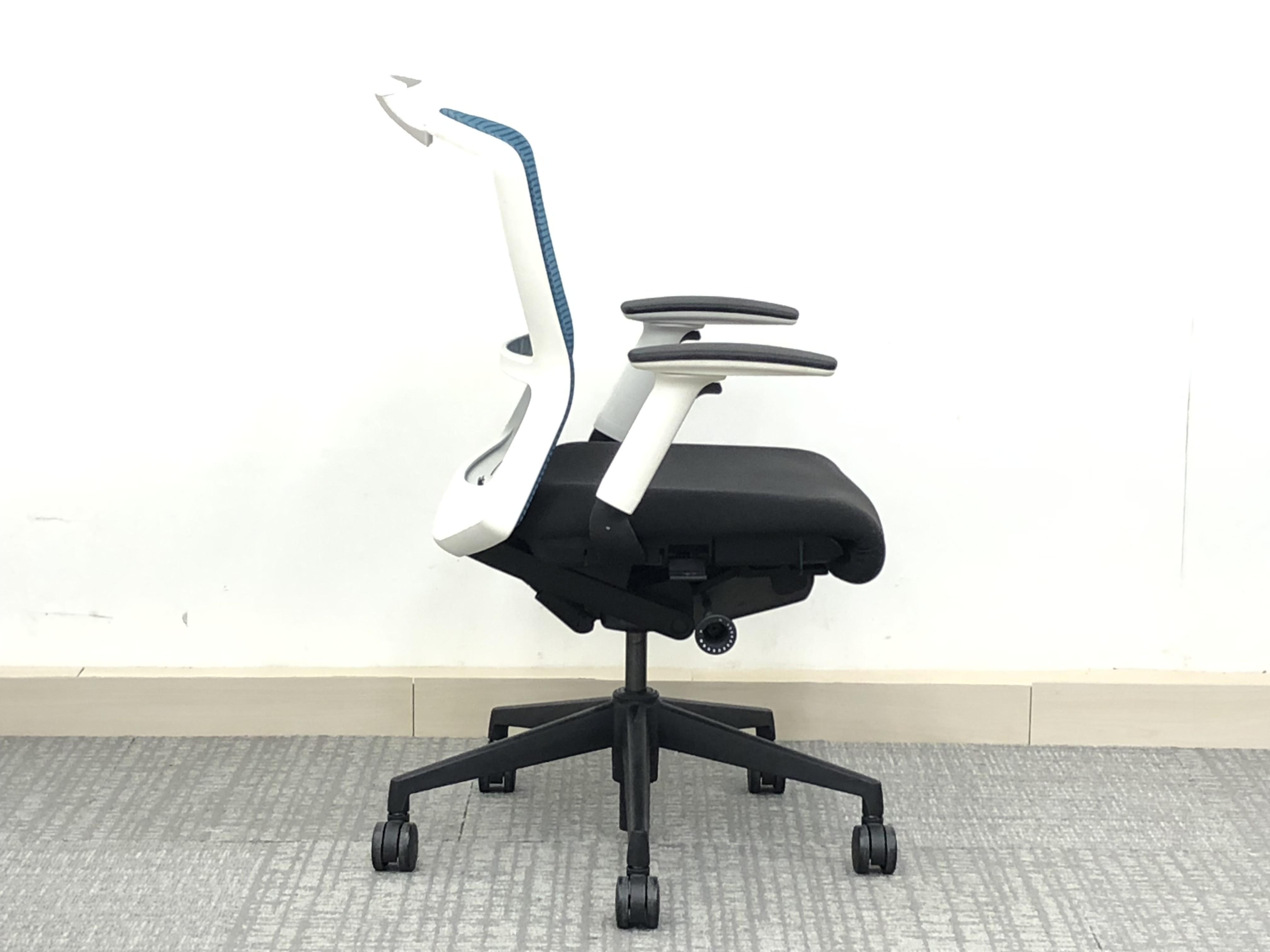また、個人的にオススメなのは『フルアジャスタブル肘』というアーム部分が斜め前に伸びていくタイプの肘置きを搭載したモデルです。高さを上げれば上げるほどパッドが前方に迫り出していくので、デスクワークの際にちょうど肘を置きたい場所に肘置きがきます。これがとても快適なので、ぜひ一度お試しいただきたいです!*エルフィチェアの肘パーツはフルアジャスタブル肘の他に、固定肘、アジャスタブル肘などがあります。