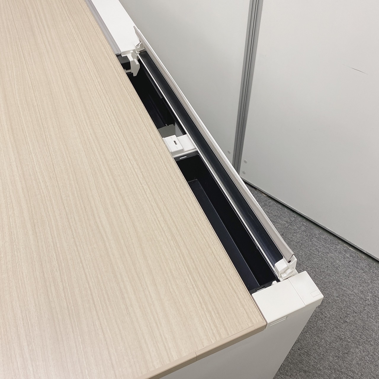 - 対向配線も横配線も自在なケーブリングが可能。幕板内側に余長ケーブルやOAタップを収納できる配線ダクトを標準装備。