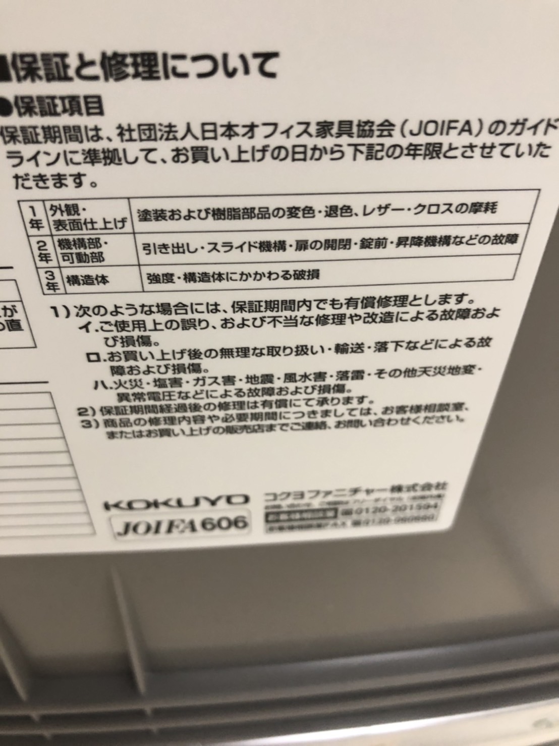 - 不具合多数そのチェアの本来の効用を果たすための機能に不具合ある。(例、オフィスチェアの上下昇降キャスター付きミーティングチェアのキャスター使用不可のような不 具合)