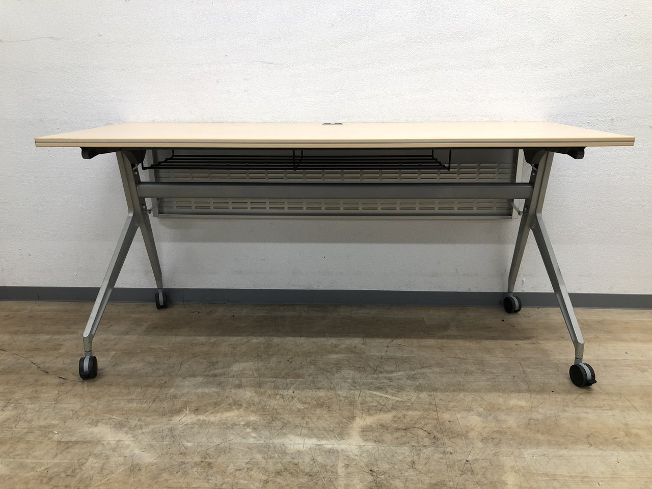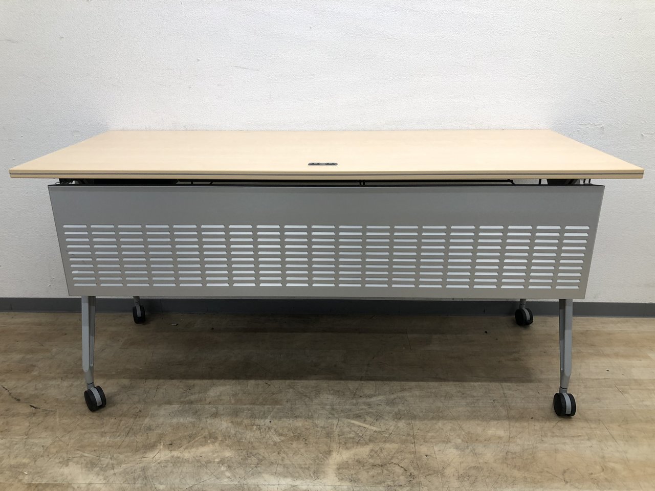 【良い品がお買い得!】■ウチダ 平行スタックテーブル W1500×D600mm【コンセント付】 ナチュラル木目カラー 幕板パネル付き【おつとめ品】【倉庫在庫KRC】【RP】- 品川・三田店
