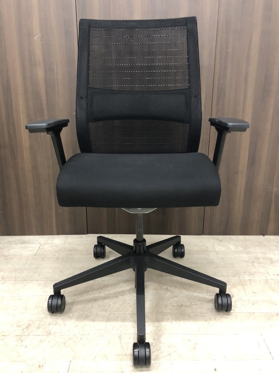 【長時間座る人のための椅子!】■スチールケース製 シンクチェア(Think) 可動肘付 ブラック 3Dニット ランバートサポート付- 川崎店