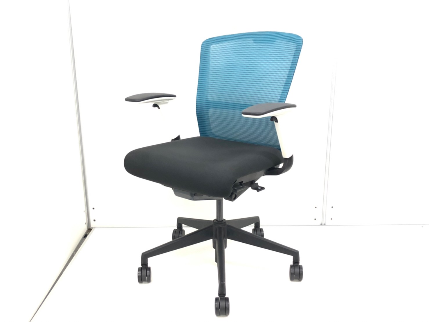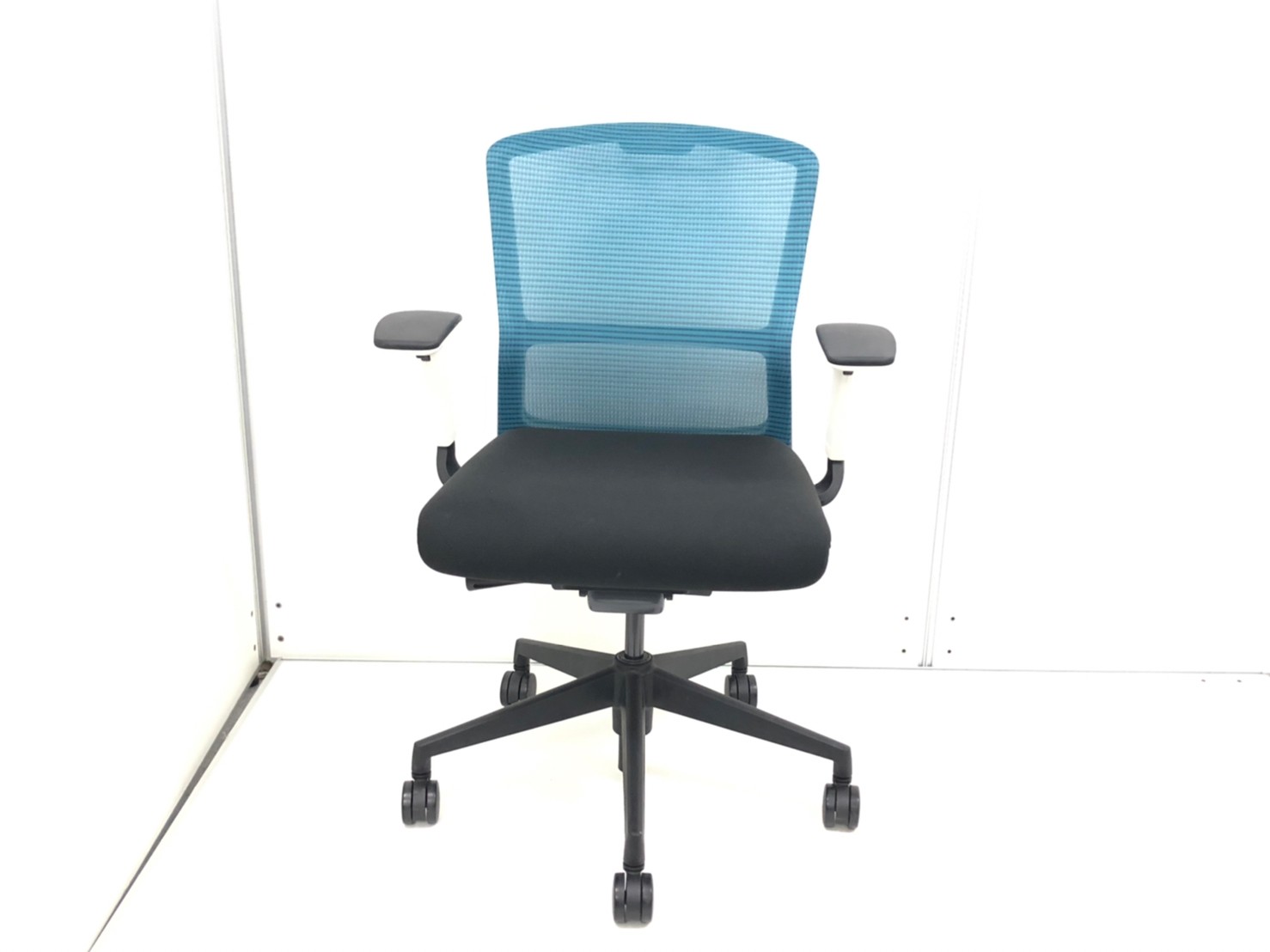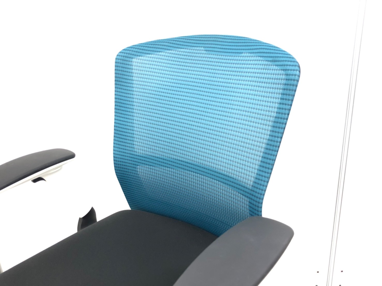 【西】【洗練されたデザインで大人気!ワンランク上の座り心地!】■ウチダ (UCHIDA)製 エルフィ (ELFIE) 肘無ミドルバック ■背面メッシュ ■アクアブルー×ブラックフレーム ■ハンガー付 *熊本市で、中古オフィス用品・オフィス家具をお探しなら「オフィスバスターズ熊本サテライト店」へ*※サテライトは商談スペースのみの為、在庫は福岡の在庫を掲載しております。商品につきましてはお電話にてお問い合わせください。