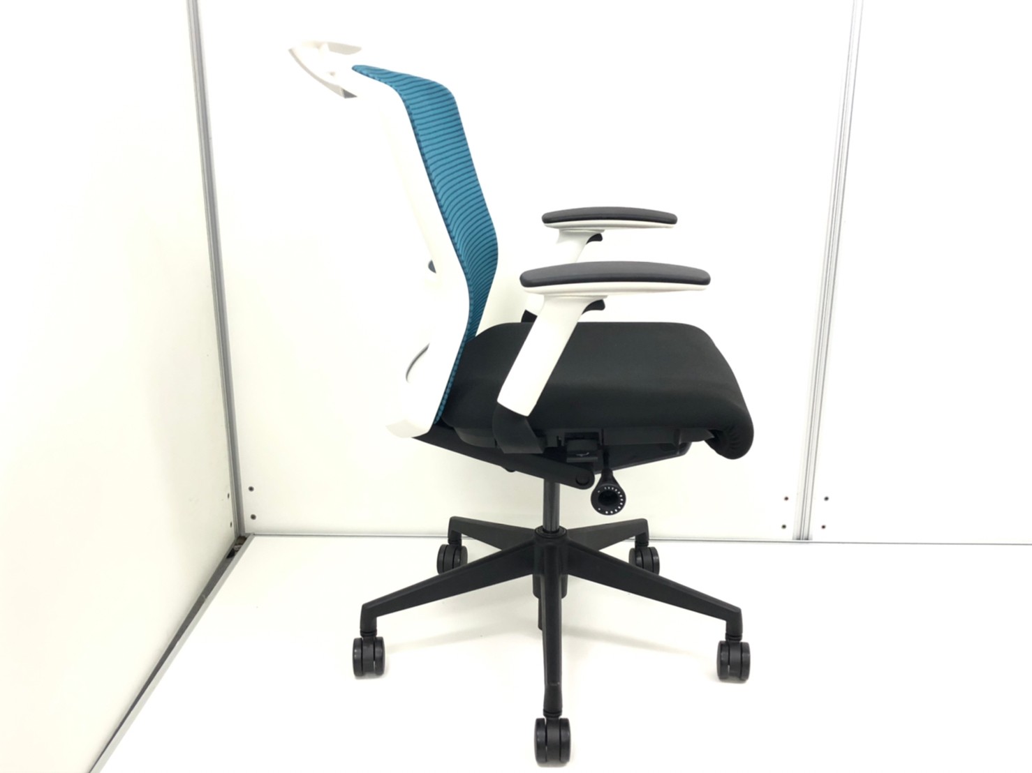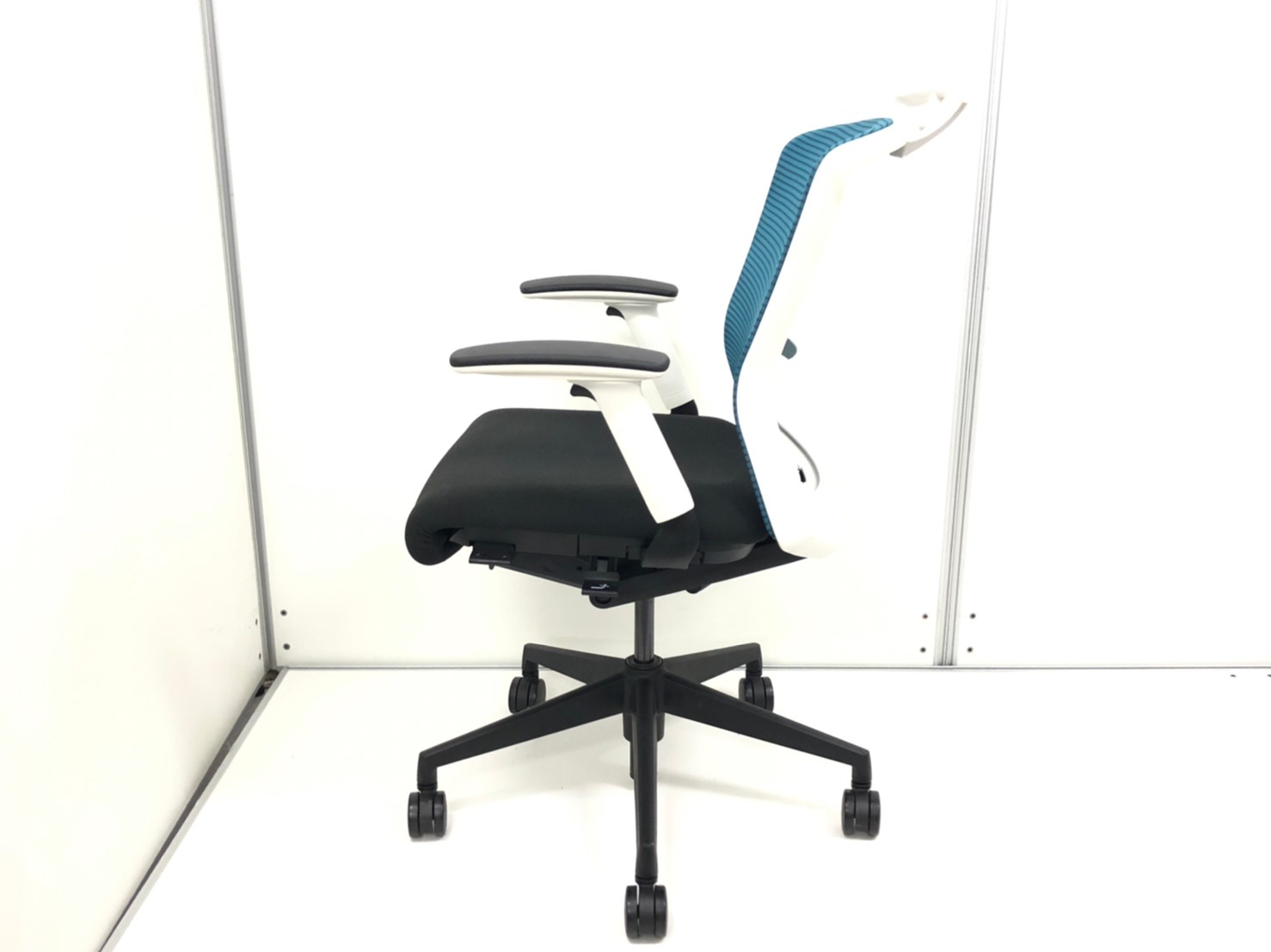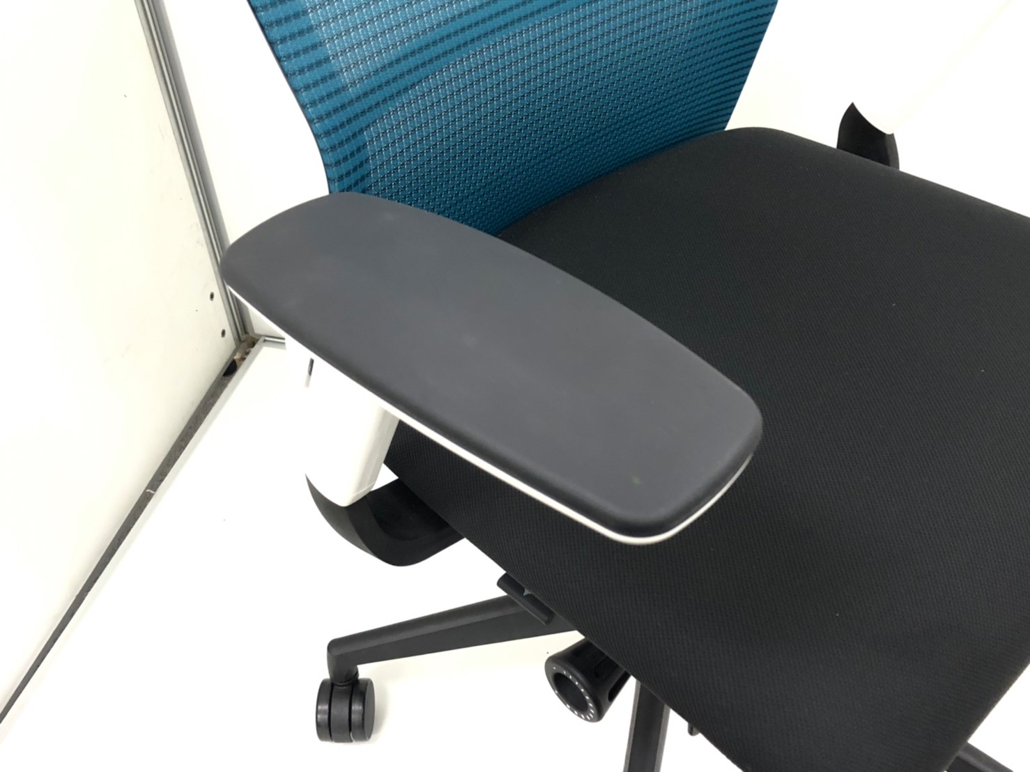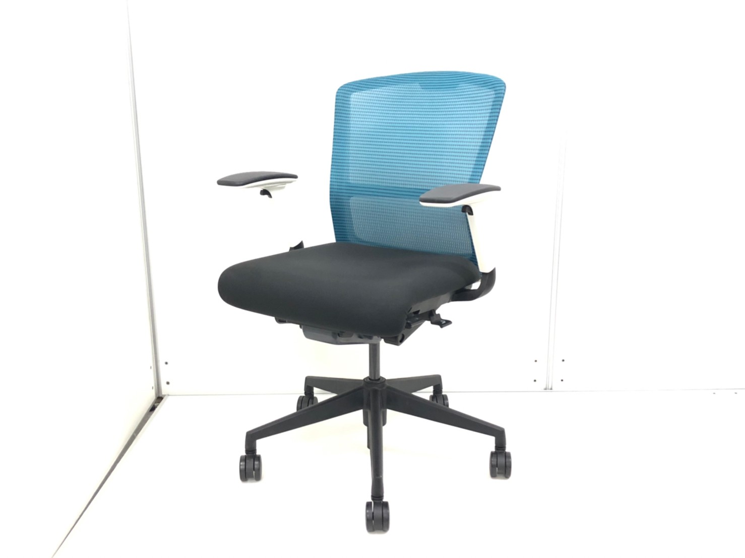【西】【洗練されたデザインで大人気!ワンランク上の座り心地!】■ウチダ (UCHIDA)製 エルフィ (ELFIE) 肘無ミドルバック ■背面メッシュ ■アクアブルー×ブラックフレーム ■ハンガー付 *熊本市で、中古オフィス用品・オフィス家具をお探しなら「オフィスバスターズ熊本サテライト店」へ*※サテライトは商談スペースのみの為、在庫は福岡の在庫を掲載しております。商品につきましてはお電話にてお問い合わせください。