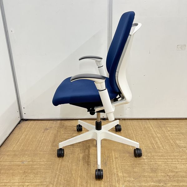 【7脚入荷】【背のハイ・ロー切替が出来る!「汚れにくさ」と「壊れにくさ」を実現したスタイリッシュデザインのOAチェア!】■イトーキ(ITOKI)製 フルゴ(fulgo)チェア 肘付き ハイバック ■サークル肘・ハンガー付 ■ネイビーブルー×ホワイトシェル