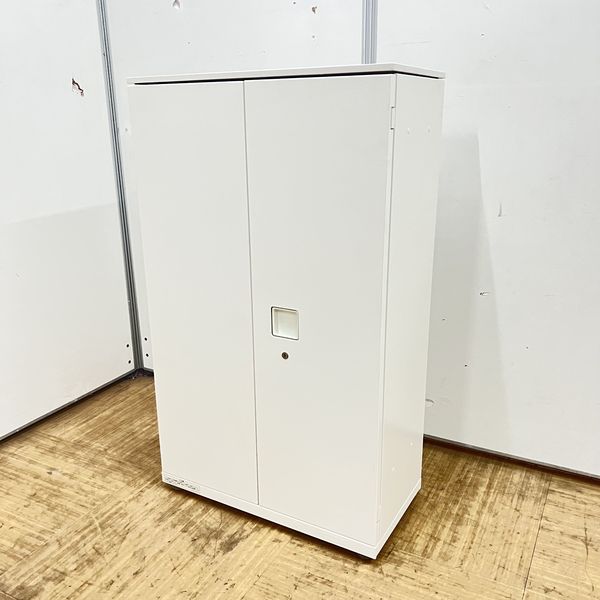 【オフィスの書類をスッキリ整理!取っ手がどの方向からでも開くマルチハンドルが人気!】■オカムラ(okamura)製 レクトラインシリーズ ローキャビネット 両開き書庫 H1250㎜ ■ホワイト ■シリンダー錠