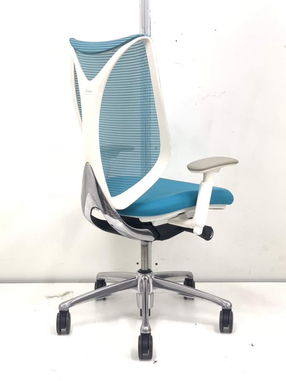 【在庫セール品】【定価約16万円】【前傾チルト付!流れるような美しいフォルムの最高級メッシュチェア!】■オカムラ(okamura)製 Sabrina(サブリナ) ハイバック 肘付き ■可動肘 ■背面メッシュ:アクアブルー/座面:ブルー×ホワイトフレーム【AD】