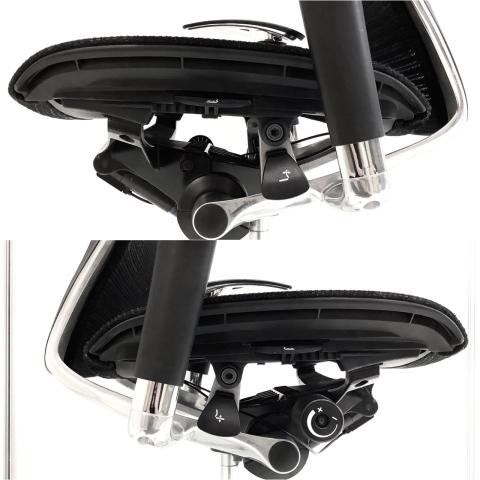両手を自然に下ろした位置にあるレバーにて、座面の前後スライド調整(前後50mm)が可能です。