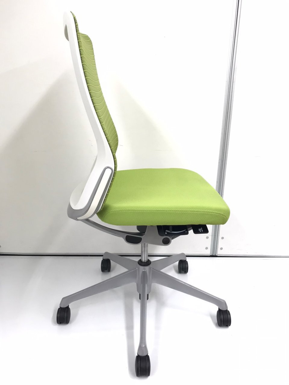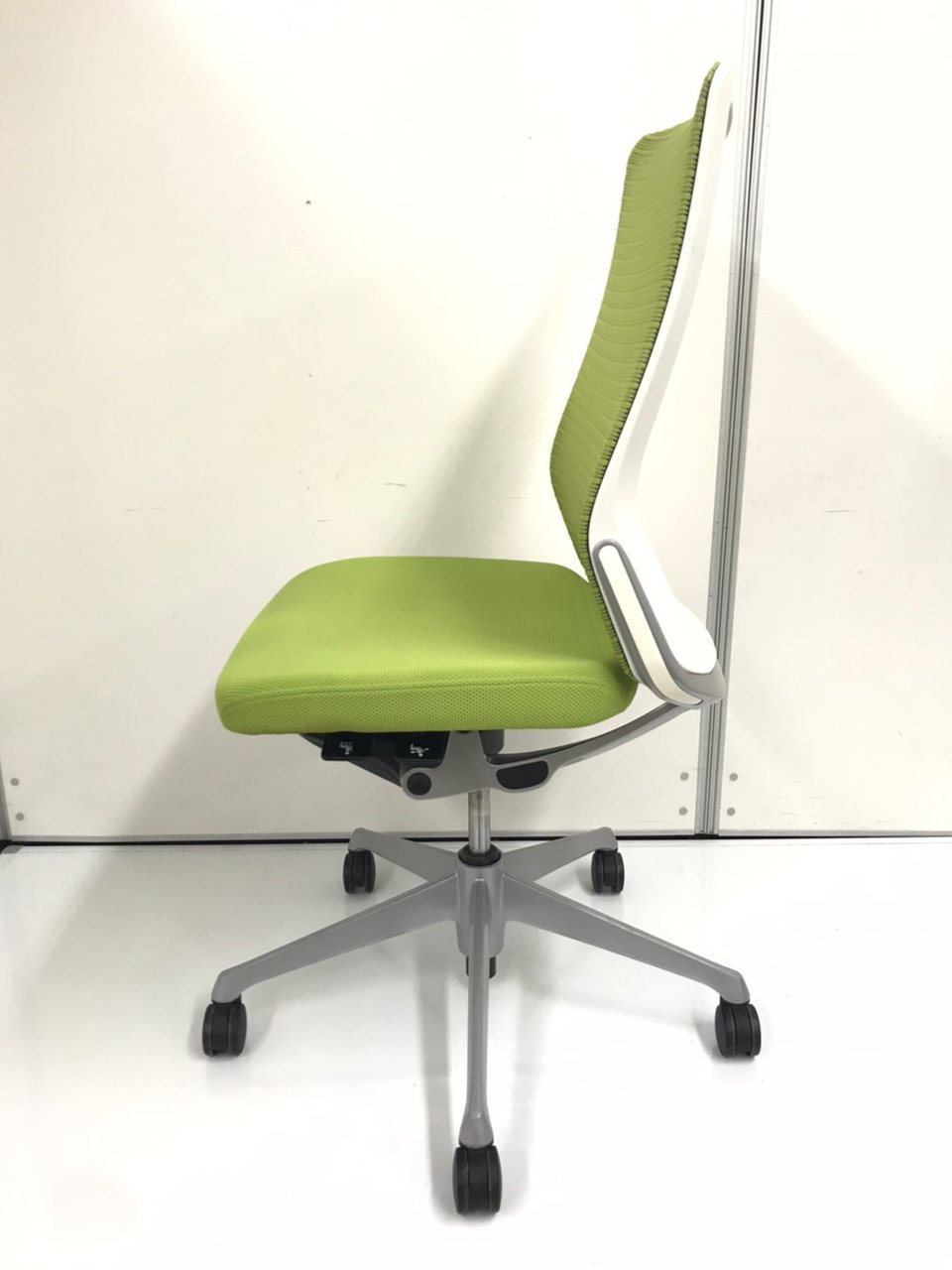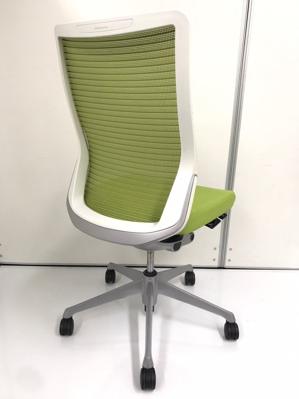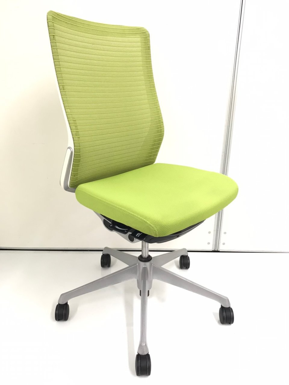 ★【T10】【商品入替のため、残り1脚限り】オカムラ製 コーラル(Choral) ライムグリーン ホワイトシェル ハイバック 座面前後 チェア 背面メッシュ どんな空間にも調和するデザインと最上級の操作性! 肘無しハイバックチェア!!