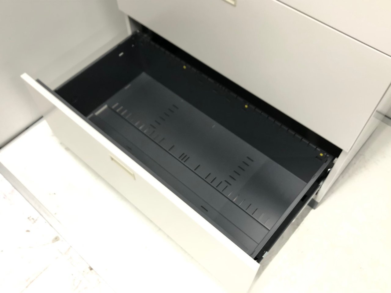 - 多数不具合あり引出の開閉不可、施錠不可、棚板無しといったその書庫の本来の効用を果たすための機能以外の多数が使用不可(例、扉、引出の開閉がしづらいなどがある。 )