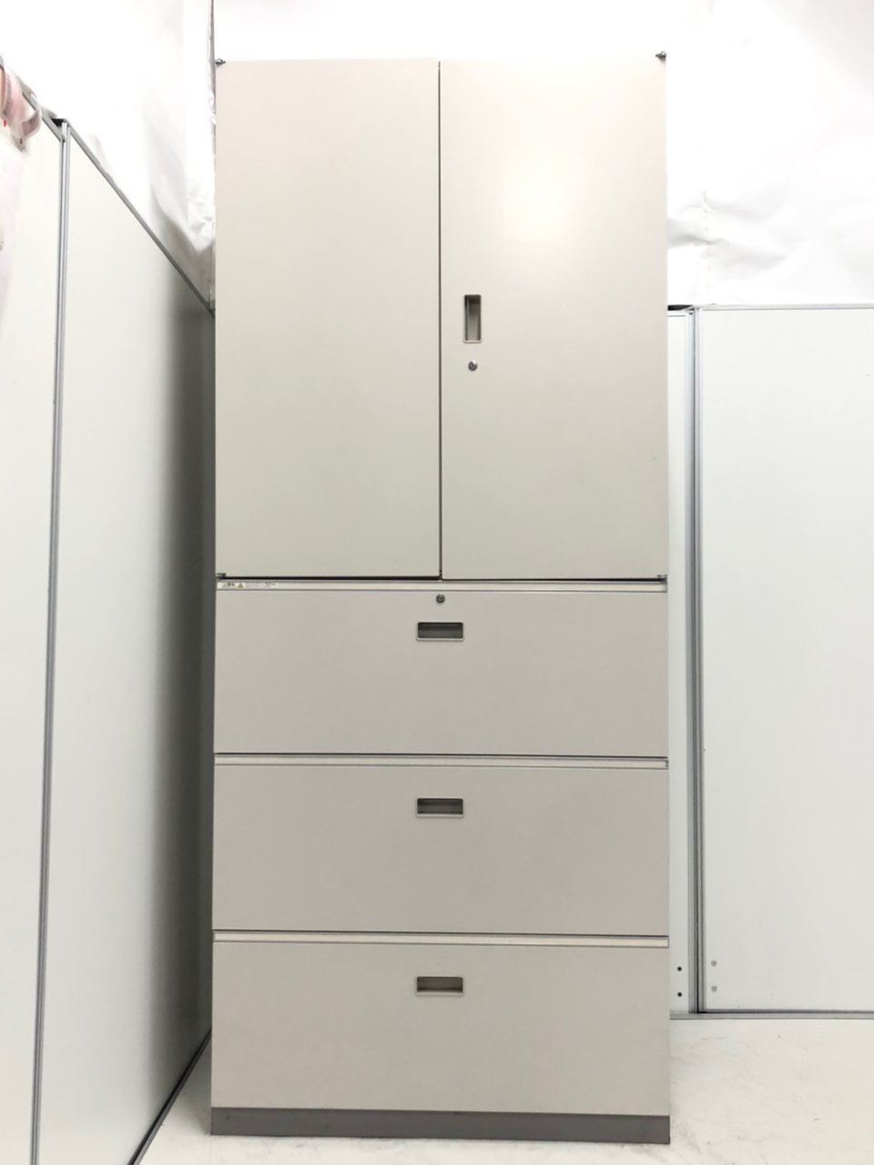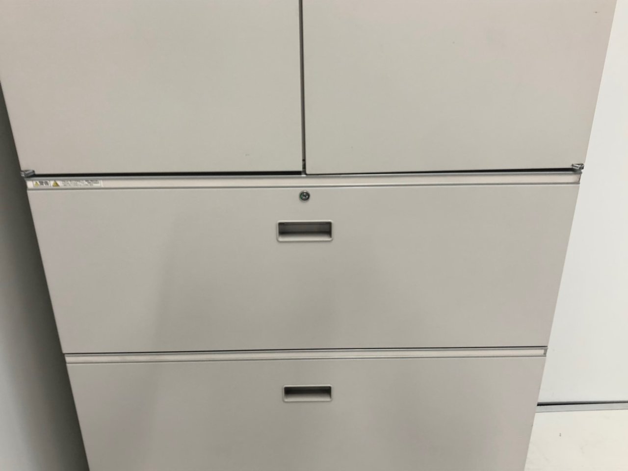 - 一部不具合ありそ引出の開閉不可、施錠不可、棚板無しといったの書庫の本来の効用を果たすための機能以外の一部が使用不可(例、扉、引出の開閉がしづらいなどがある。 )