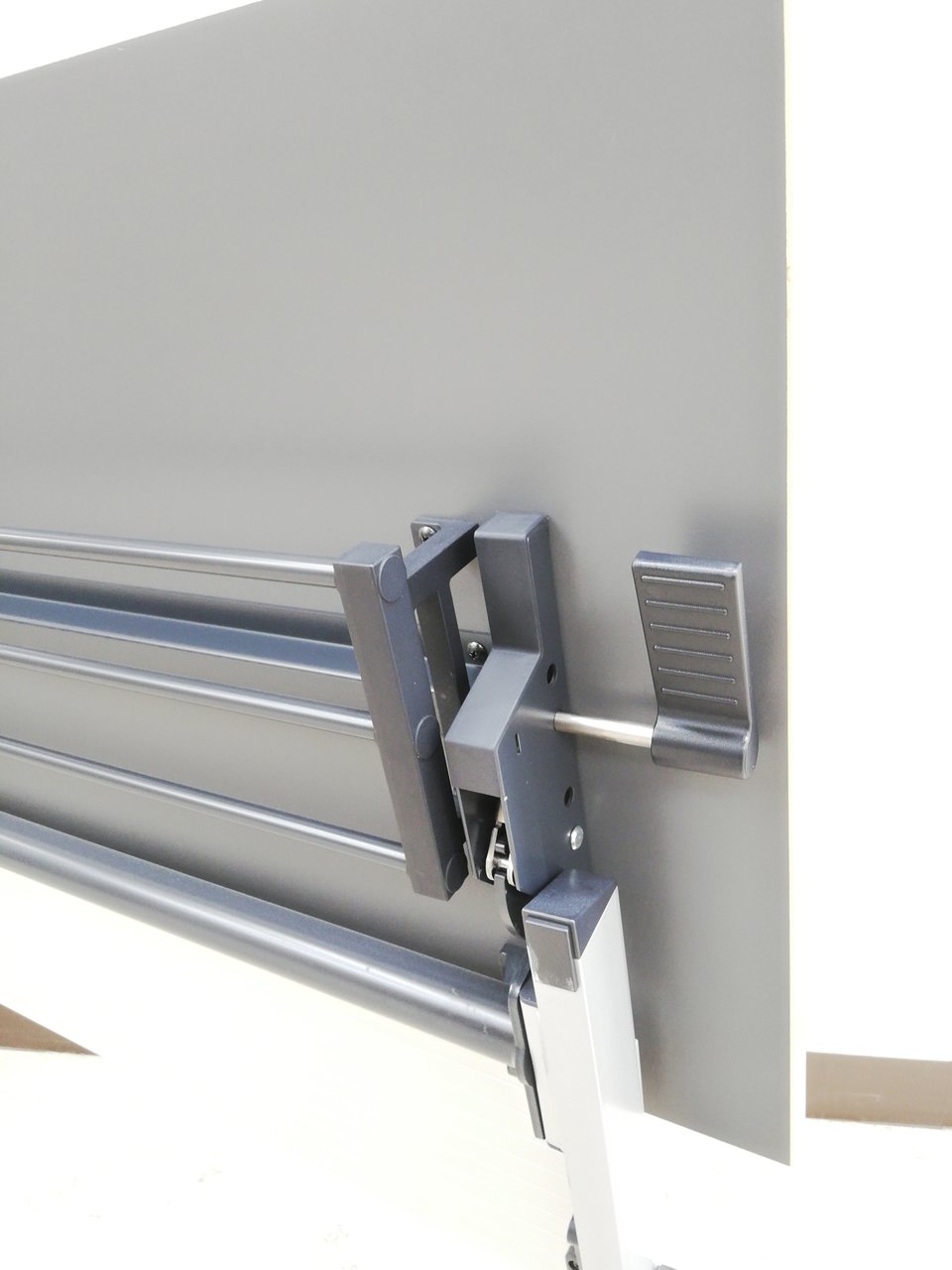 従来型のサイドスタックテーブルでございまして、キャスター付きで、天板を「くるっ」と回転できますので、使用しない時は畳んで片付け可能でございます!