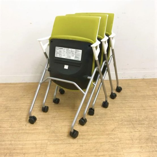 コクヨ製 ピエガシリーズ ライトグリーン 背面クッション ネスティングチェア!!【関西倉庫在庫】- なんば日本橋店