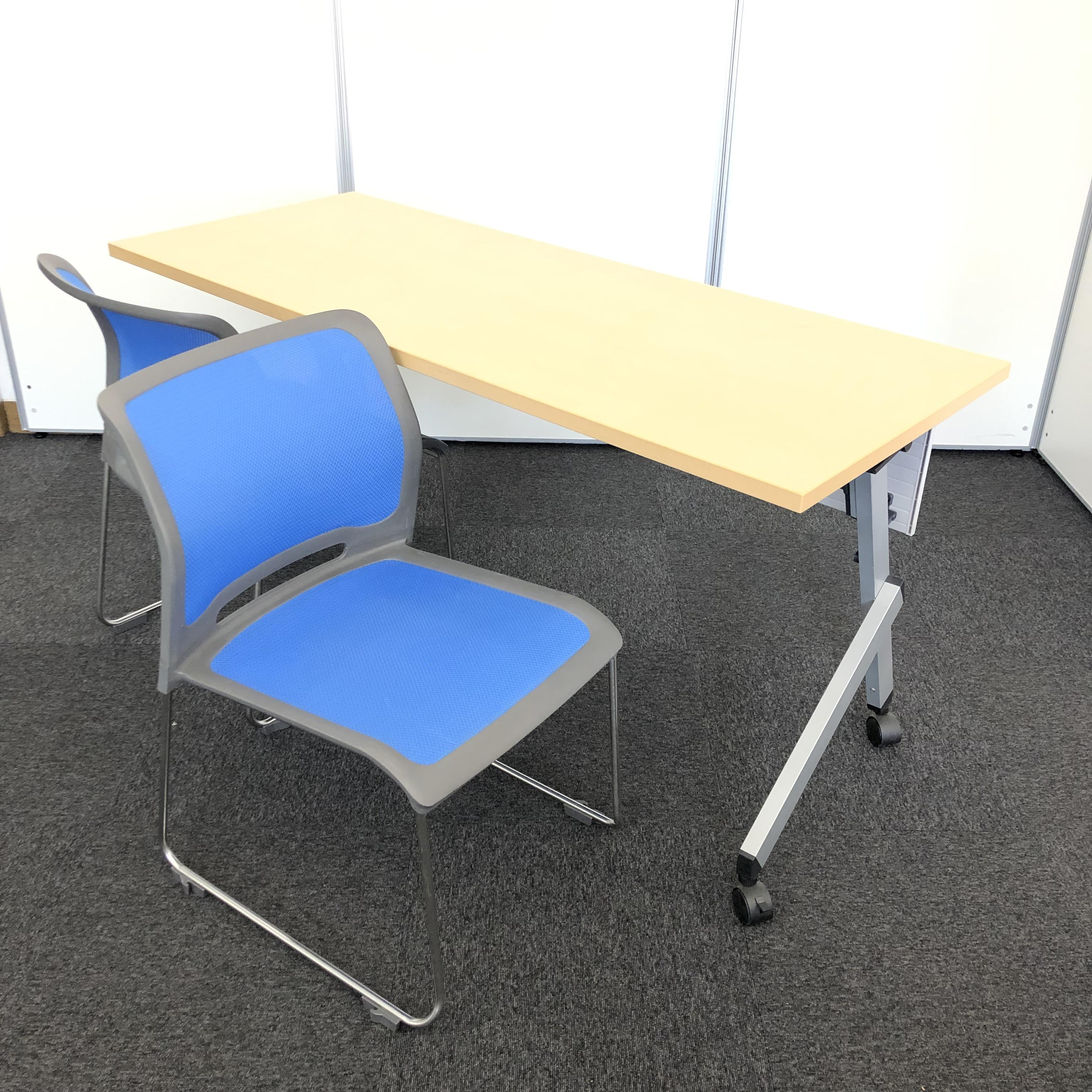 内田洋行(ウチダ)製|サイドスタックテーブル+チェアセット|天板ナチュラル|幕板付き|オフィスバスターズ尼崎店- 豊中・尼崎店