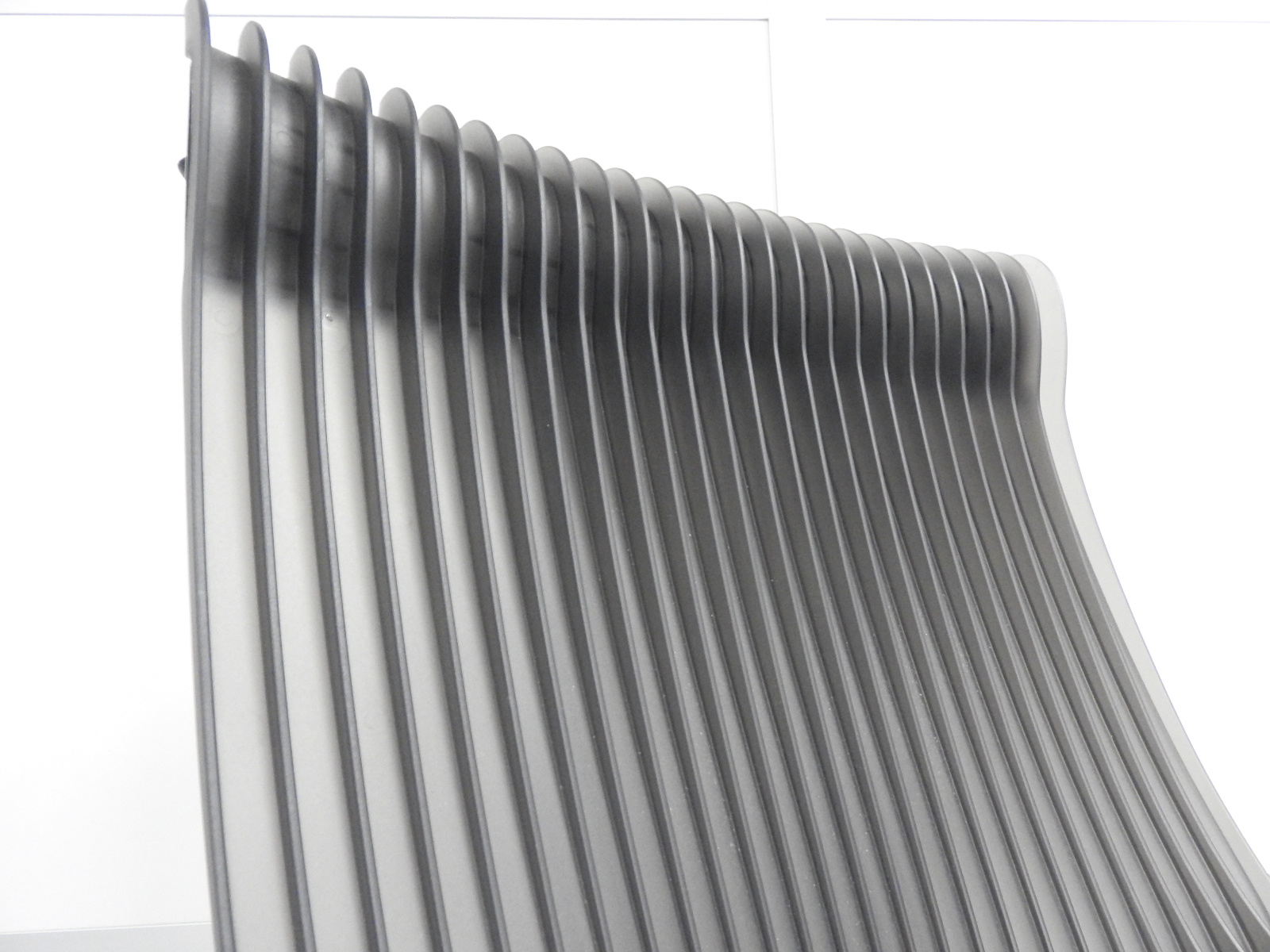 見た目は少し硬そうに見えるエラストマー素材ですが、座ってみると程よいしなり具合のやわらかな座り心地で、背中が痛くなるようなことはまるでありません。面ではなく線で支えることで、背面の通気性の良さは抜群です。