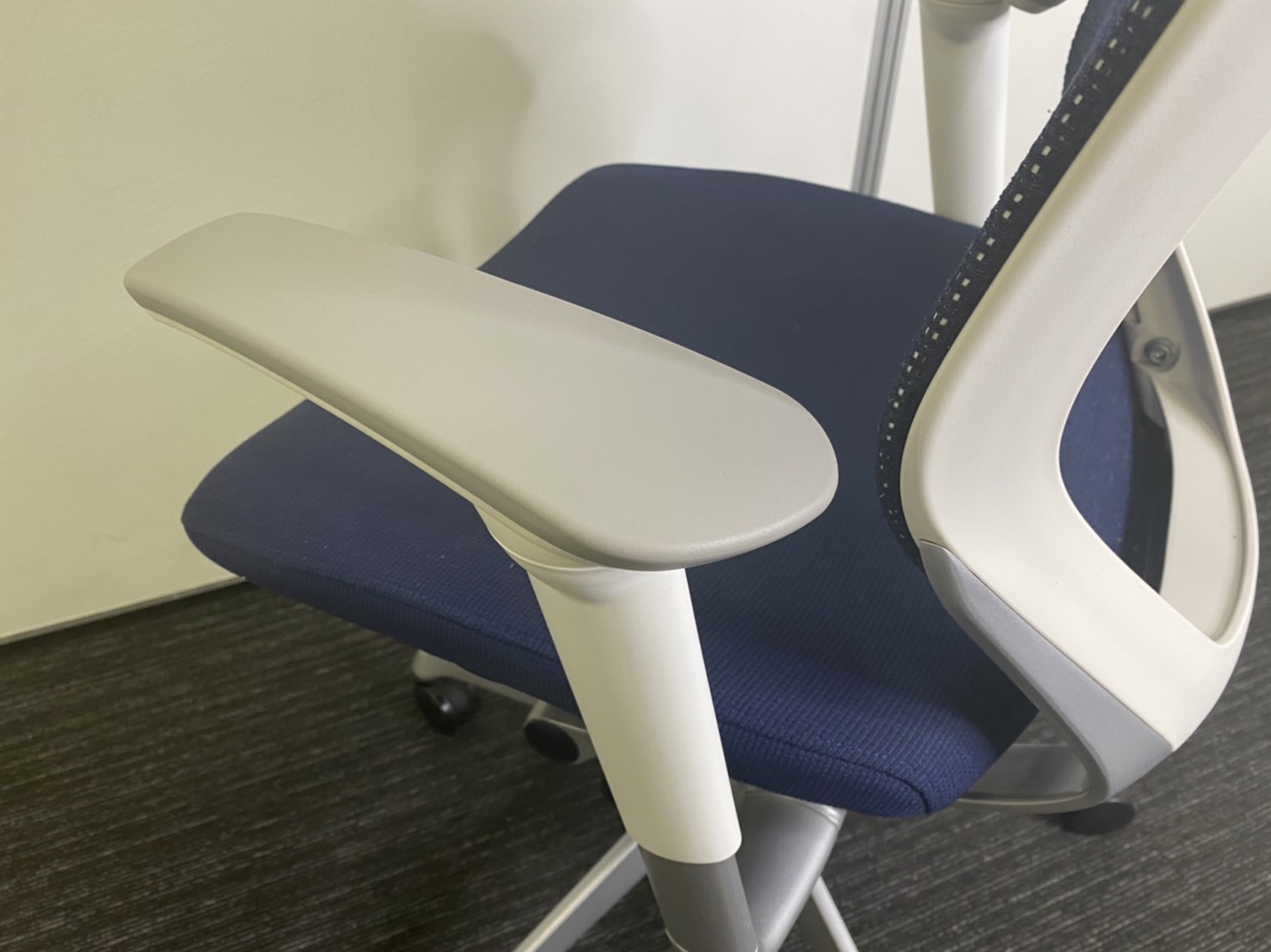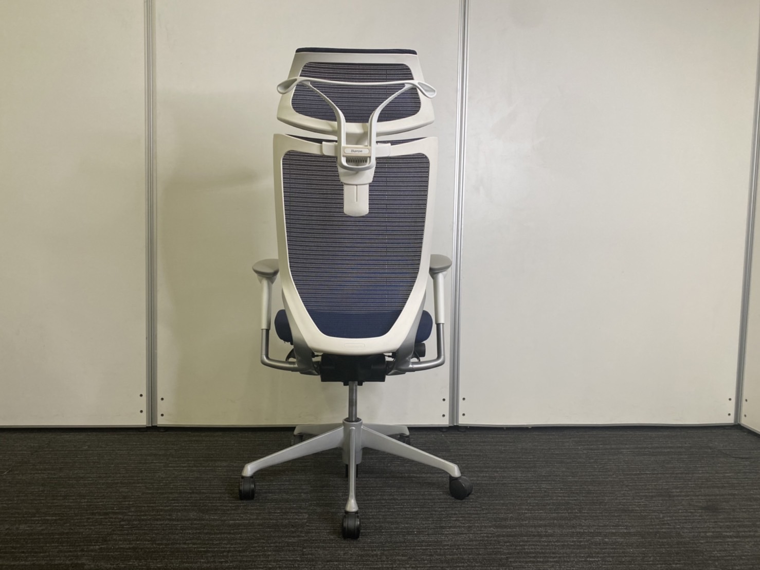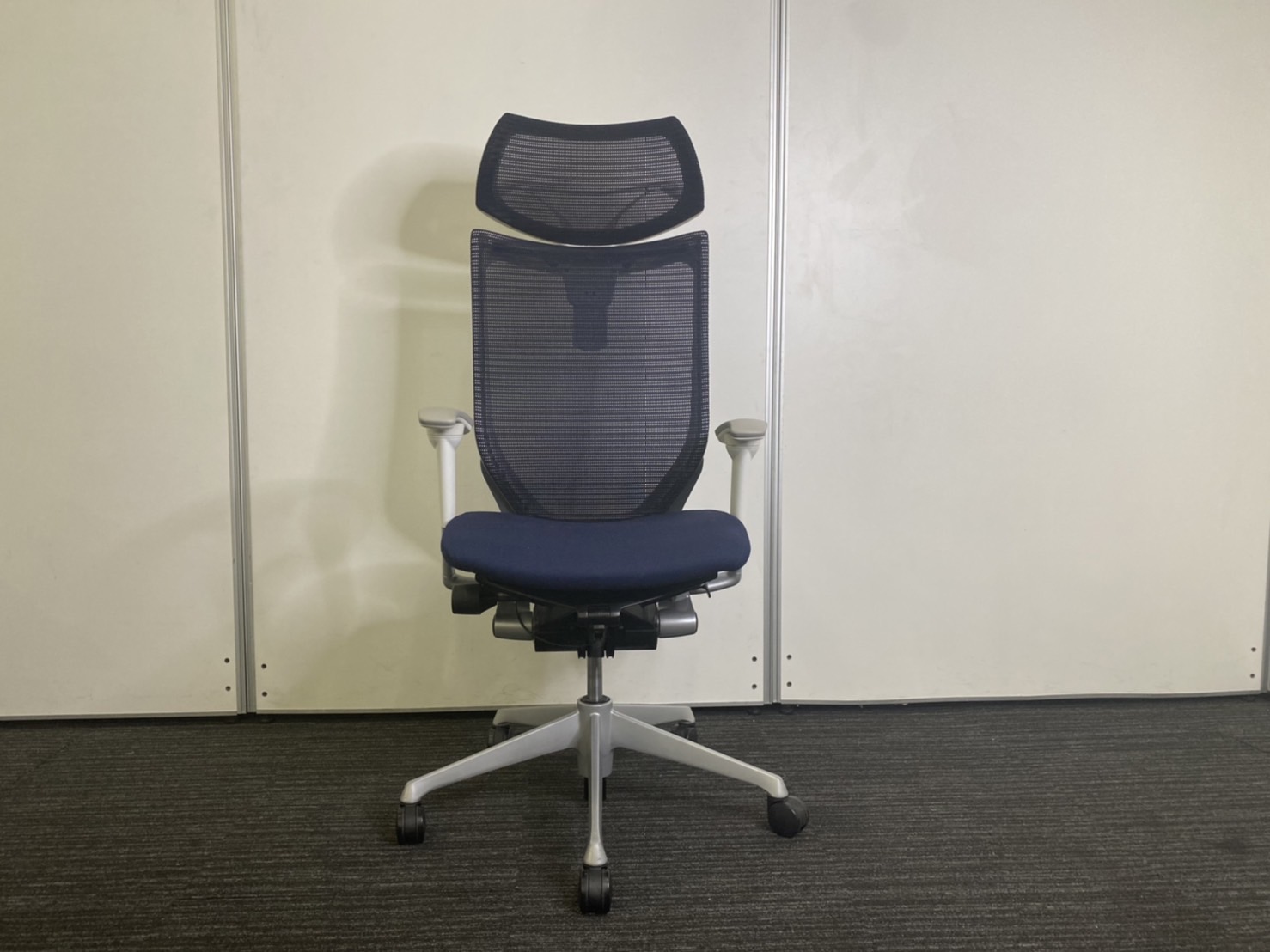 【新品ヘッドレスト付き】オカムラ/バロン/ブルー×ホワイト/可動肘/座面クッション【AD】