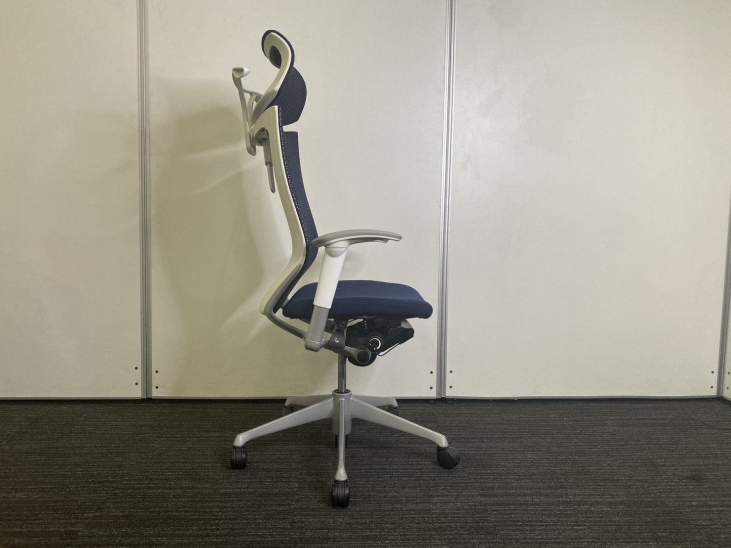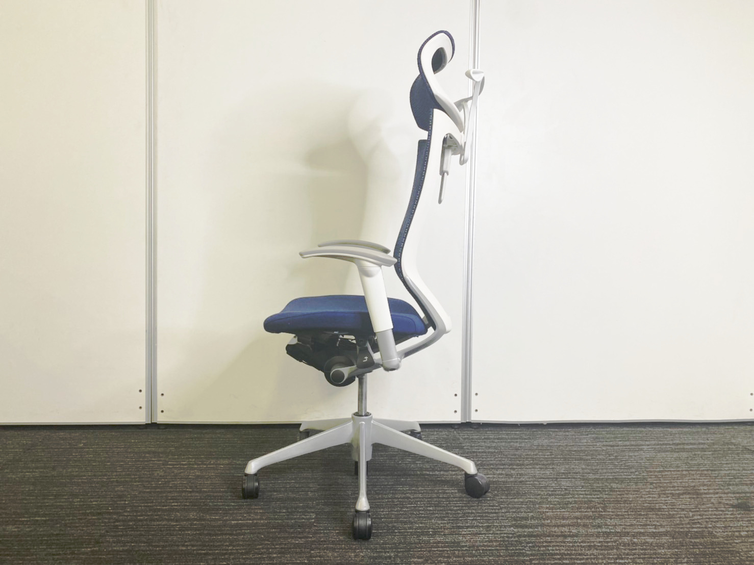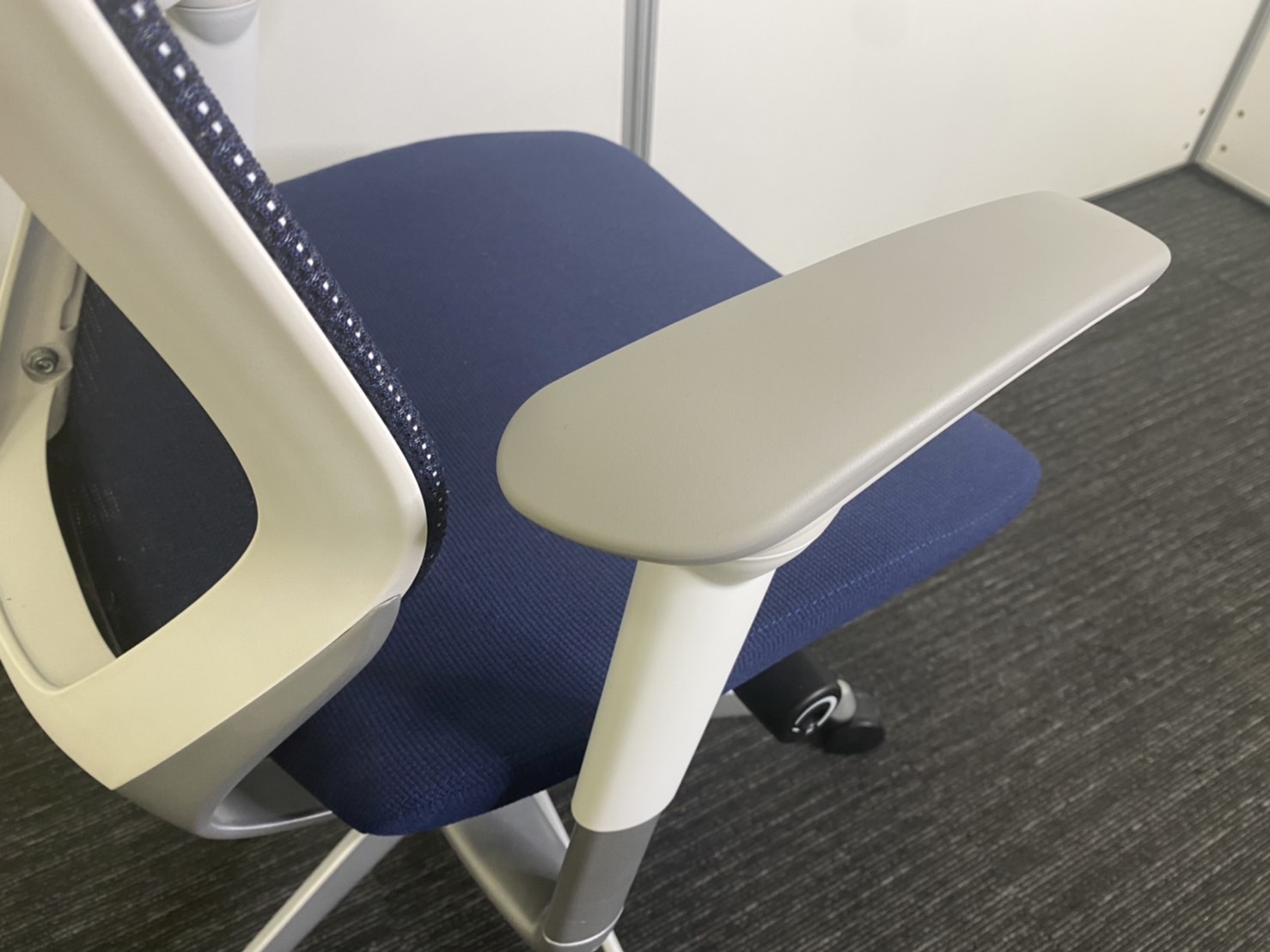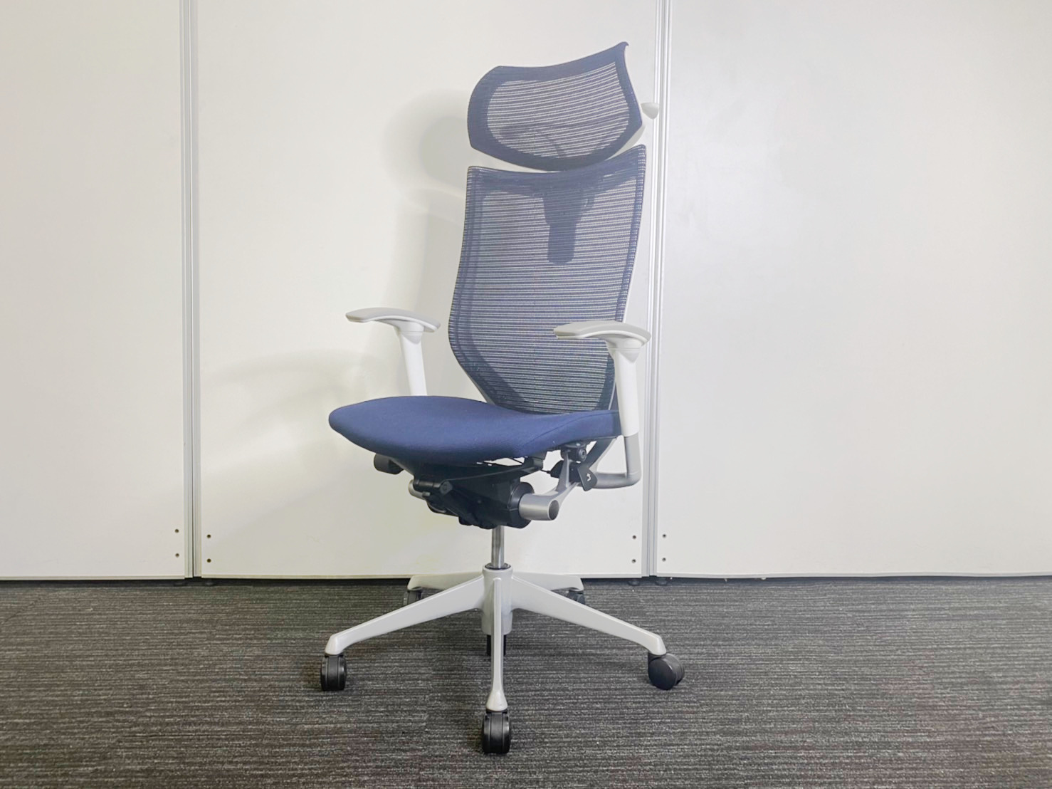 【新品ヘッドレスト付き】オカムラ/バロン/ブルー×ホワイト/可動肘/座面クッション【AD】