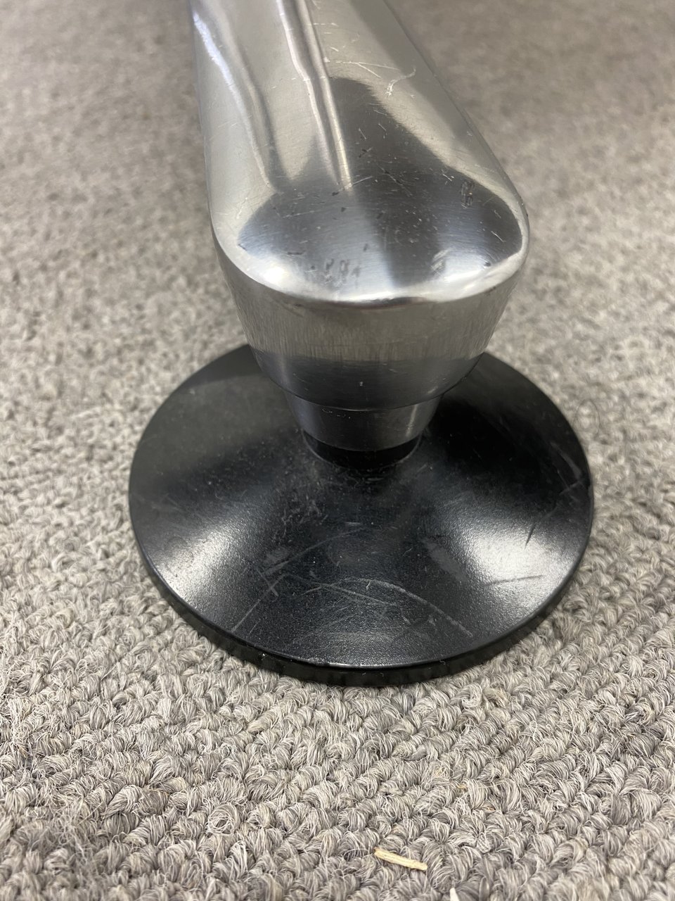 - 一部不具合あり天板歪み、アジャスター無し、キャスター使用不可ようなそのテーブルの本来の効用を果たすための機能以外の一部が使用不可な状態。(例、キャスターロッ ク機能使用不可、棚板無し等がある。)