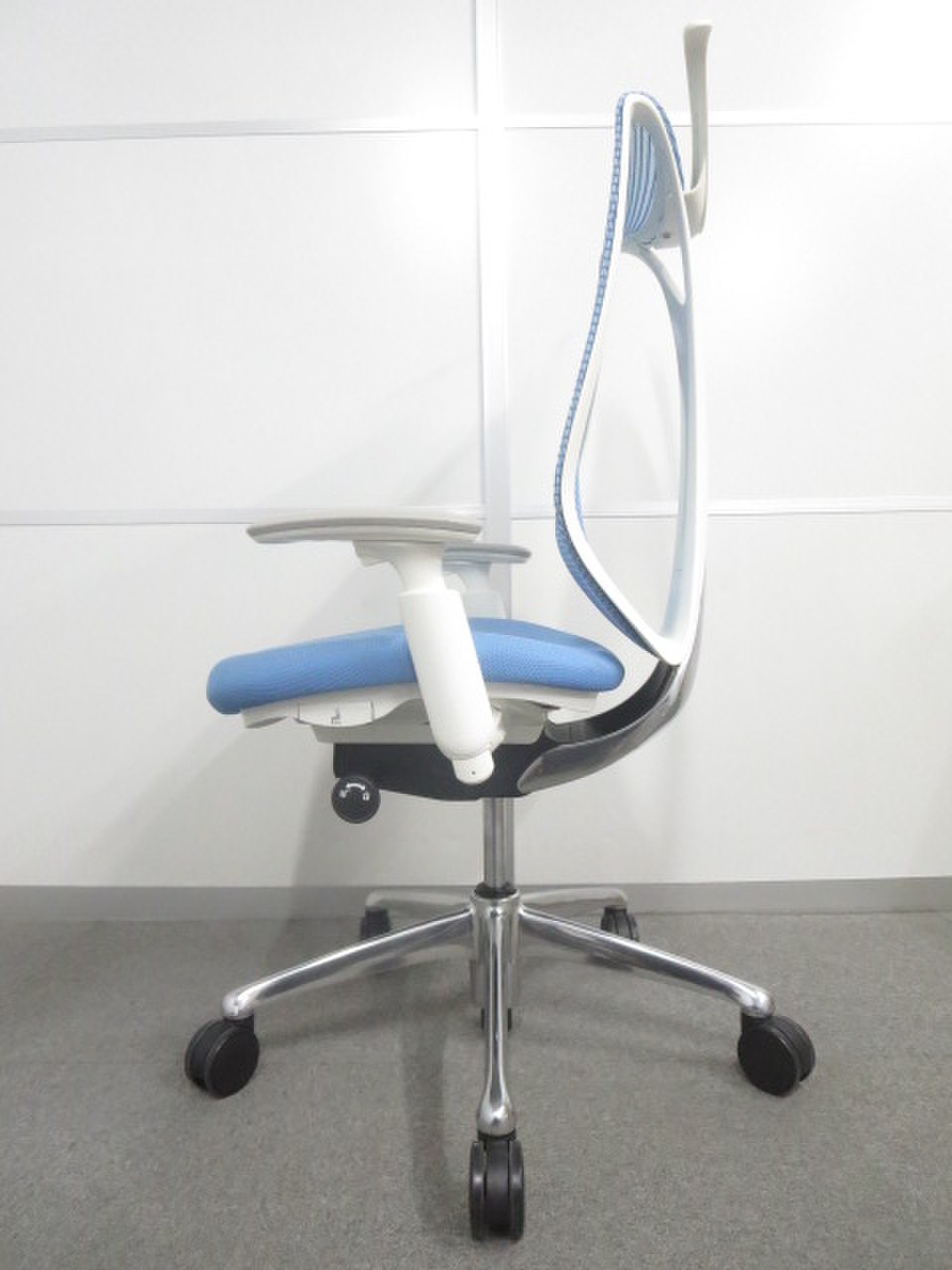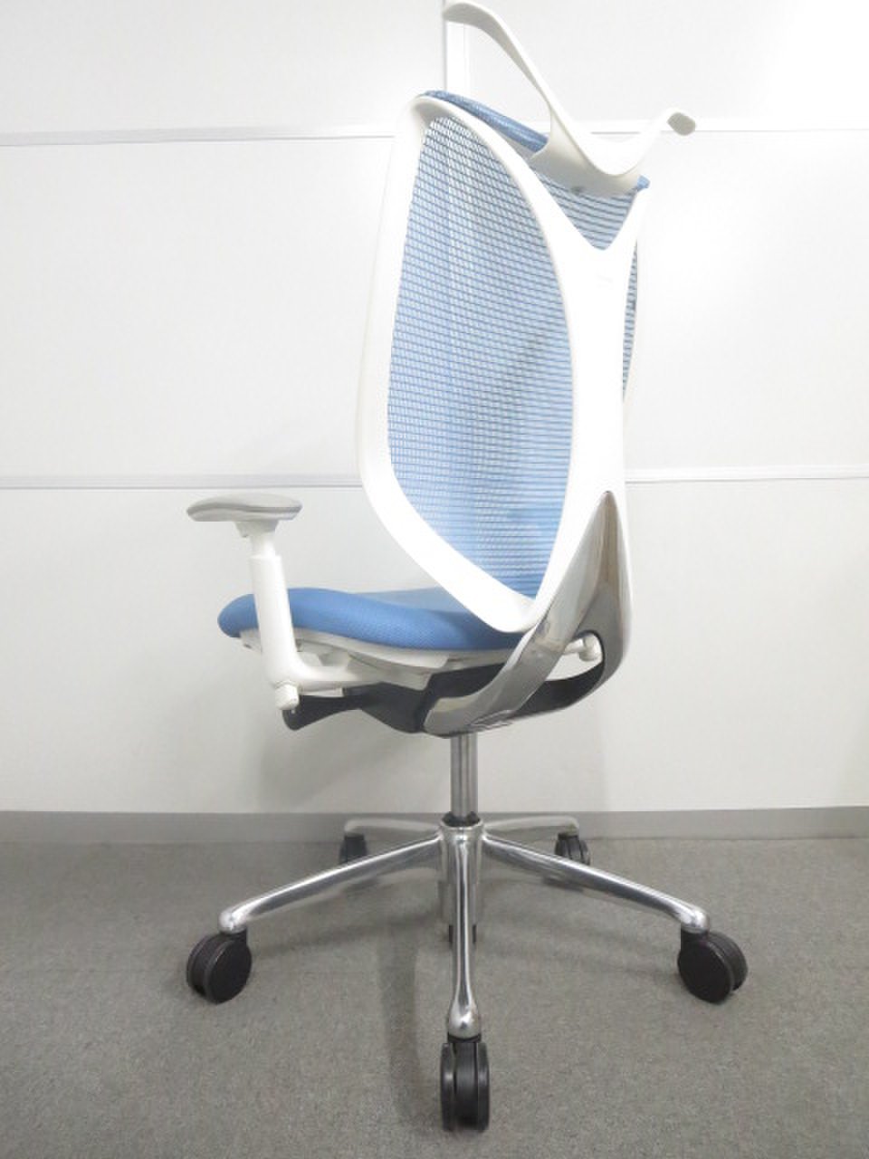 【美しい曲線&透明感のあるメッシュ】■サブリナチェア アジャストアーム付 アクアブルー ホワイトボディ- 川崎店