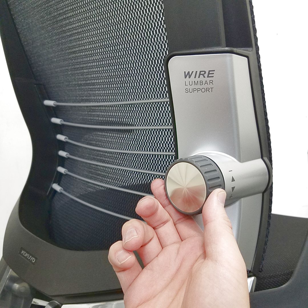 背面部分に付属しているランバーサポートは、6本のワイヤーで構成されており