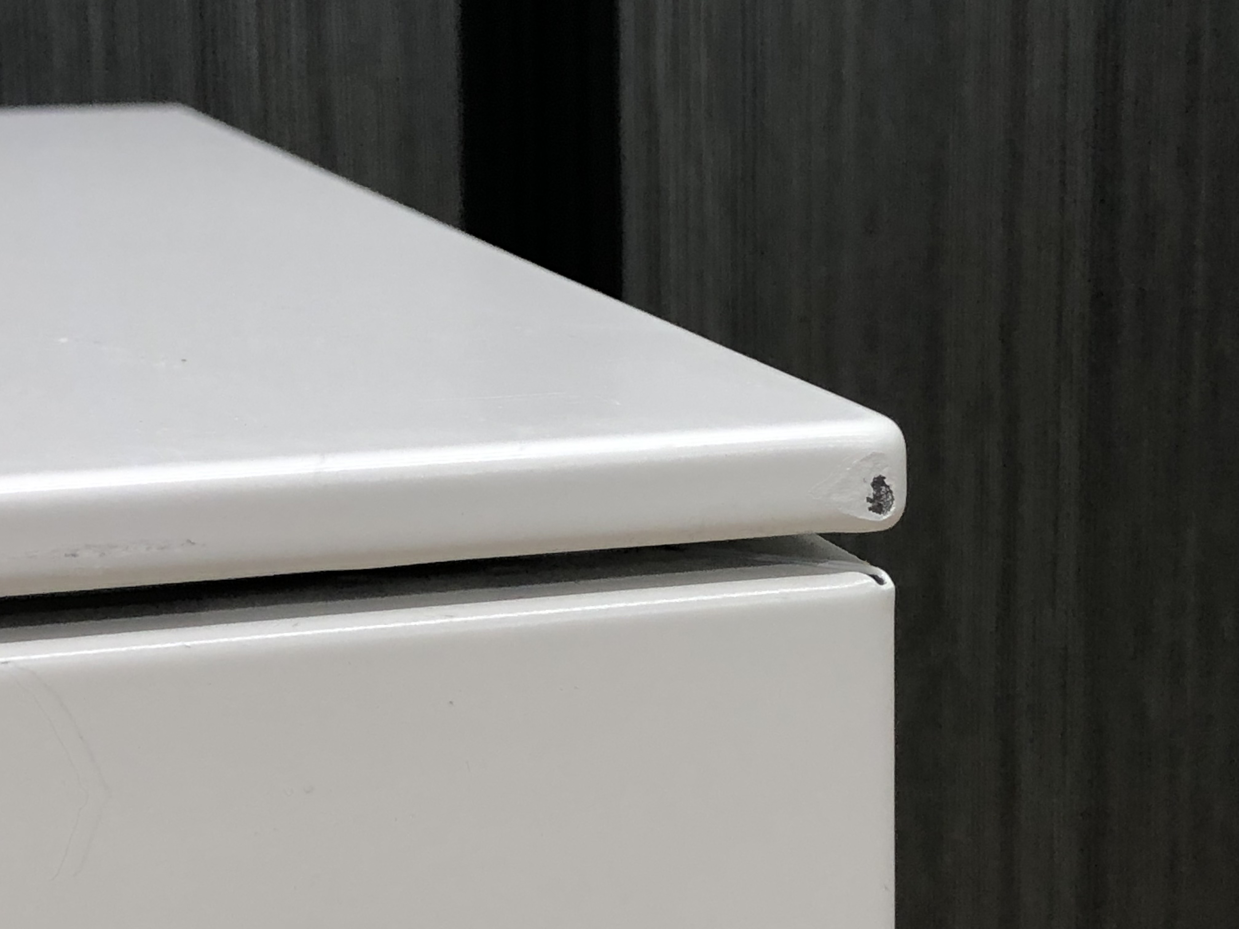 - 目立つ箇所あり傷・凹みが多数、深い傷・凹みが一部ある。(例、天板、正面、背後、サイド部分にある。)