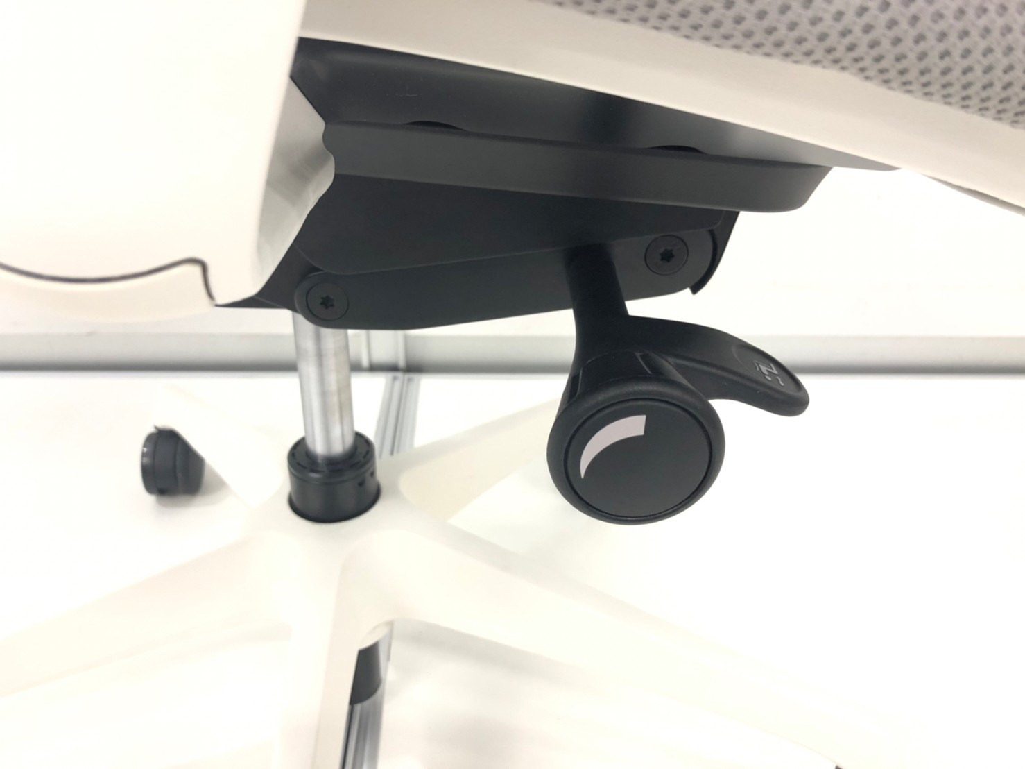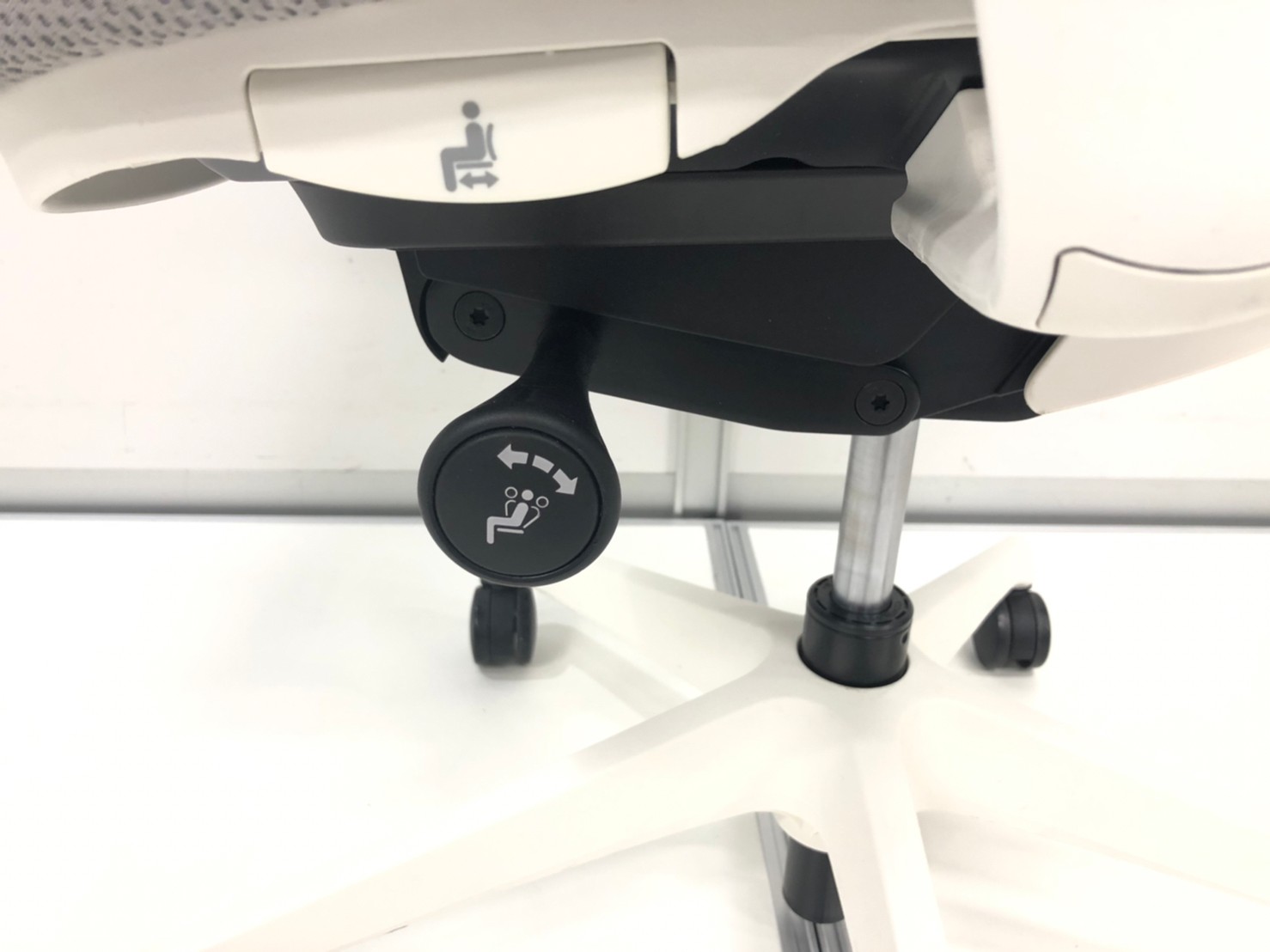 - 座面右下のダイヤル操作で、リクライニングの強弱調整が行えます。これまでのダイヤル式よりも、少ない回転数で、最弱?最強の調整が可能です。