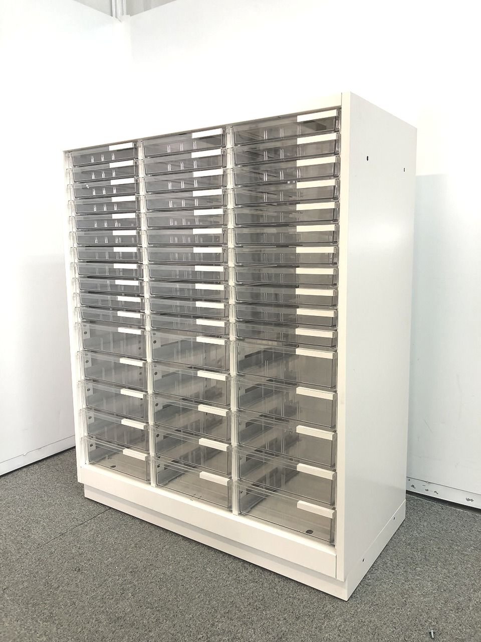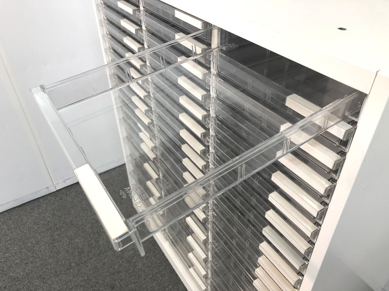 【書類・備品整理の必需品!】【珍しいクリトレが入荷!3列×浅型11段+深型5段】■イトーキ(ITOKI)製 シンラインシリーズ クリスタルトレー ローキャビネット ■3列×浅型11段+深型5段 ■天板・ベース付 ■色:ホワイト