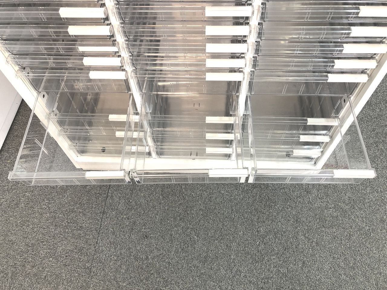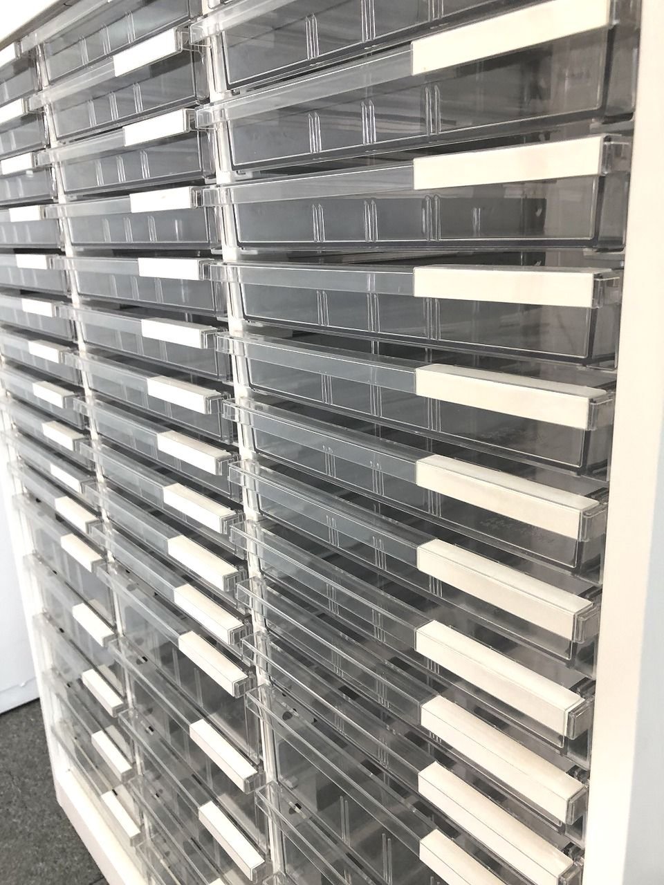 【西】【イトーキ製】【クリスタルトレー】【収納】【なんと定価14万!!中古希少美品!】即完売するレア品です‼浅型1段、深型10段!【福岡オフィス家具】【福岡中古家具】【中古事務什器】【中古チェア】【中古椅子】※全在庫品から平均的な商品を選定して撮影しております