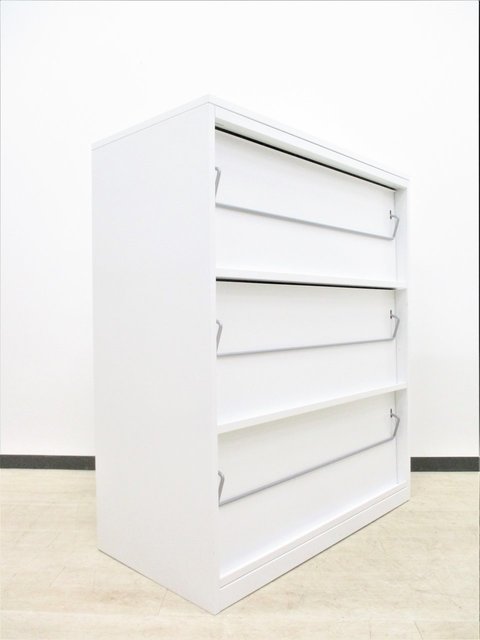 【中古品では珍しい!コクヨ製・3段雑誌架タイプ!】【雑誌・パンフレッド等々、扉を開けると収納でき、オフィスの雰囲気を変えたい方におすすめ!!】■コクヨ(KOKUYO) エディアシリーズ 雑誌架 3段 ローキャビネット ■本体ホワイト【2506】弊社使用欄【A01018642】