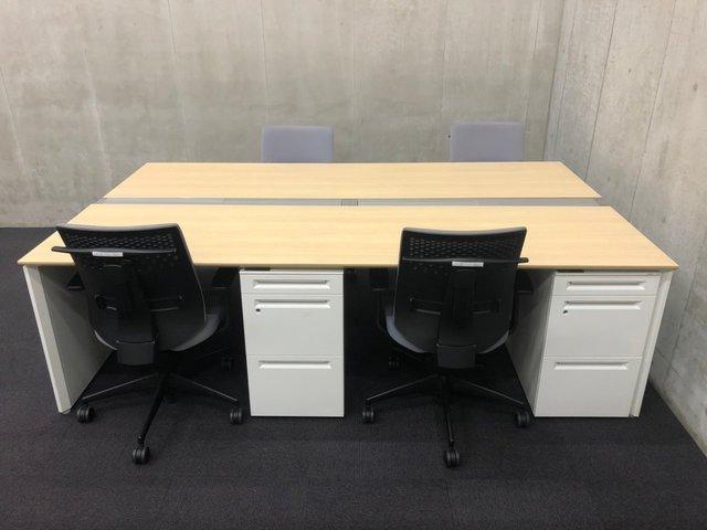 【倉庫在庫品】【W2400】/フリーアドレスデスク/オカムラ/フリーウェイ/天板ナチュラル/4名使用想定 中古 レイアウト 起業 移転 オフィスバスターズ東大阪店