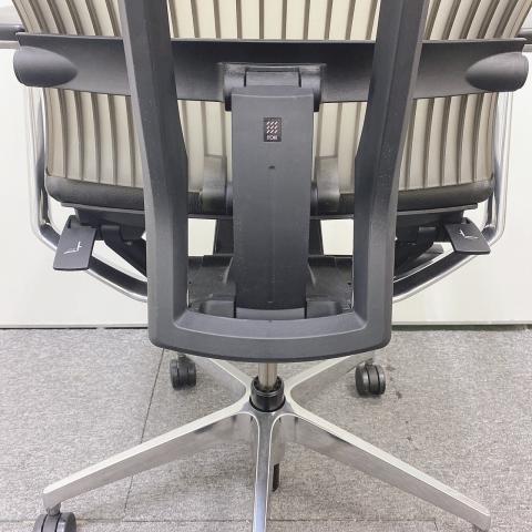 一番の特長は、着座時にチェアがピタっと体にフィットしてくれることです。 人がチェアの座り心地を調節するのではなく、チェアが人に合わせて動くのです!着座時に座面が沈み込みながら後方へスライドし、それと同時に背もたれの腰部分が前にせり出し、「ずっと座っていたくなる」と言われるほどの座り心地に調節してくれます。それを実現しているのが、A.L.S(アクティブ・ランバー・サポート)機構とP.S.S(パッシブ・スライド・シート)機構です。 さらに、背もたれにかかる体圧を徹底的に分析して作られた絶妙なカーブが、常に腰をサポートしつつ背骨のラインに沿ってくれます。