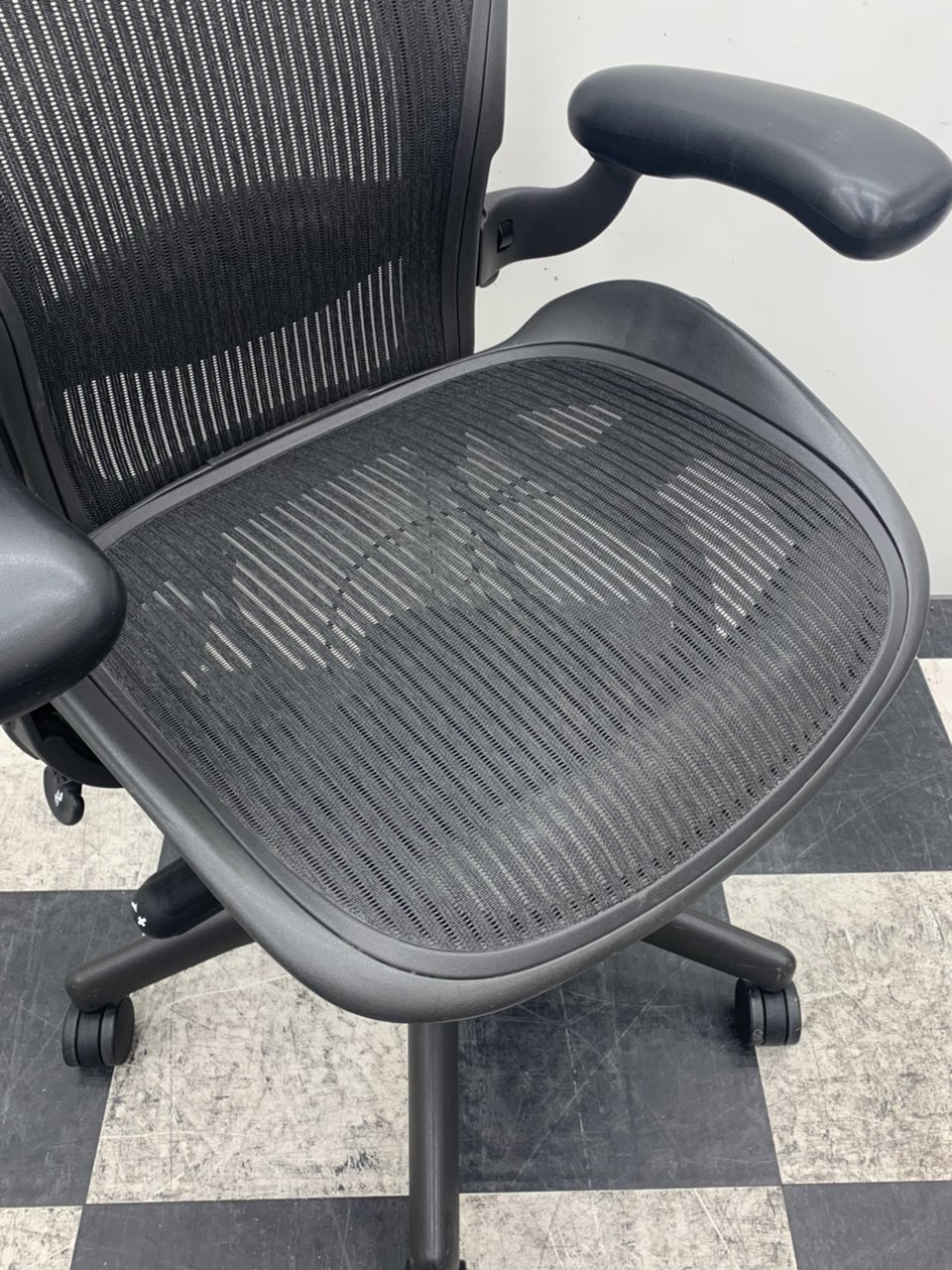 【★肘と脚にスレあり!見た目を気にしなければ使用に問題なし★】ハーマンミラー製 アーロンチェア(スタンダードタイプ) メッシュ 在宅 自宅 ゲーム 海外製 椅子 リラックス 中古家具 中古オフィス 九州最大級《オフィスバスターズ福岡博多店は、福岡を拠点として、日本全国へ中古オフィス用品・オフィス家具を提供しております》