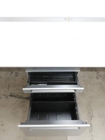 真っ白ホワイトのクリーンな色合いの天板です!ワゴン4台はセット品につき、すべてシルバーで統一となっています。
